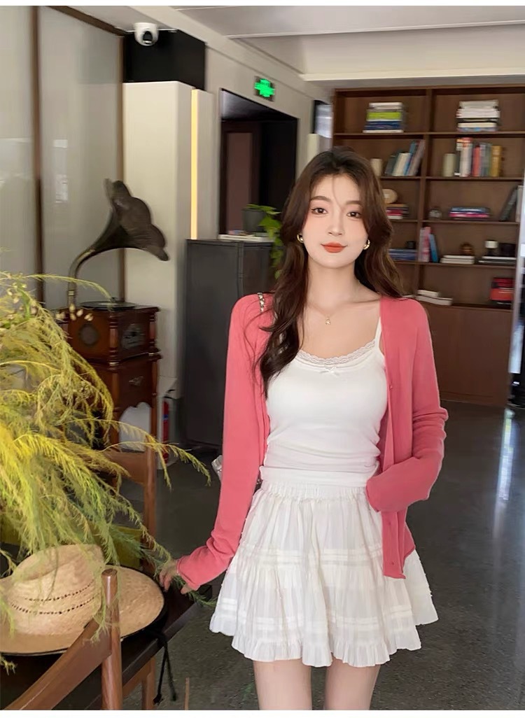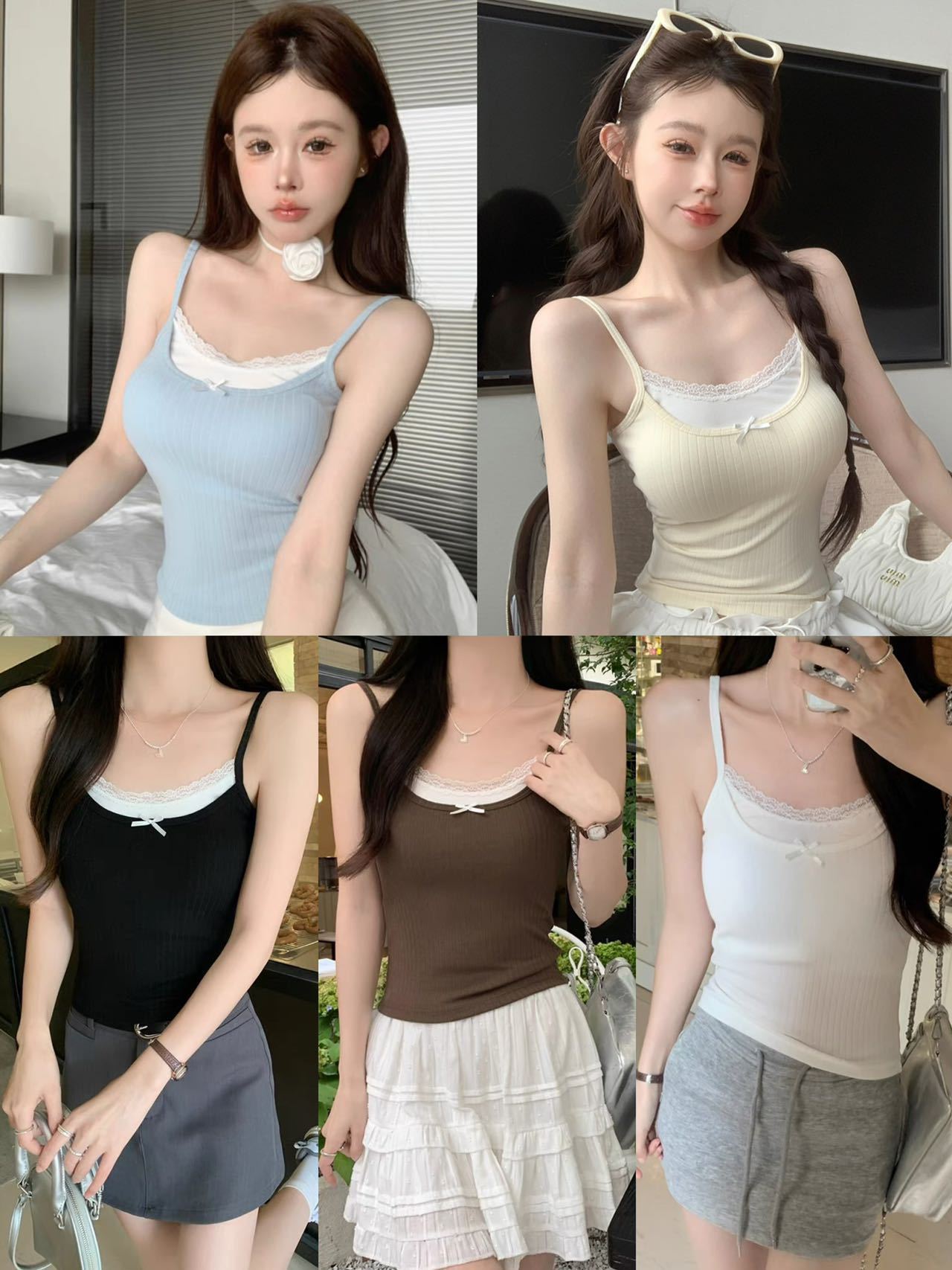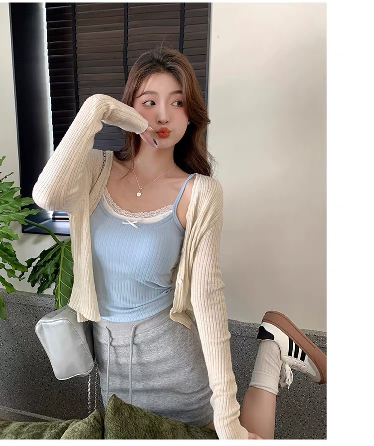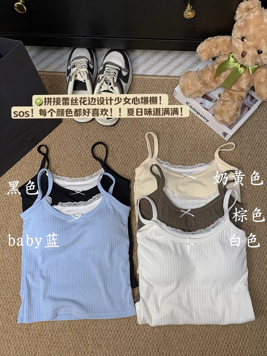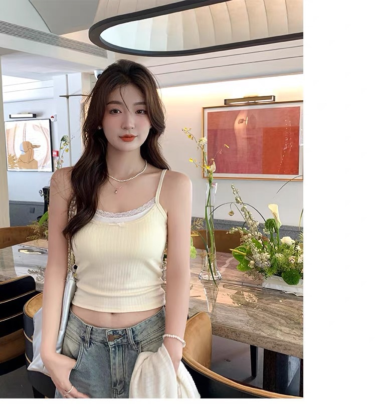 여름 달콤한 가짜 투피스 레이스 카미 솔 여성 벨트 가슴 패드 뜨거운 소녀 순수한 외부와 내부 쇼트 탑을 입고 싶어스토어 가기
