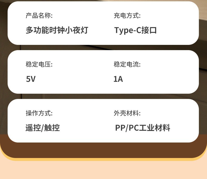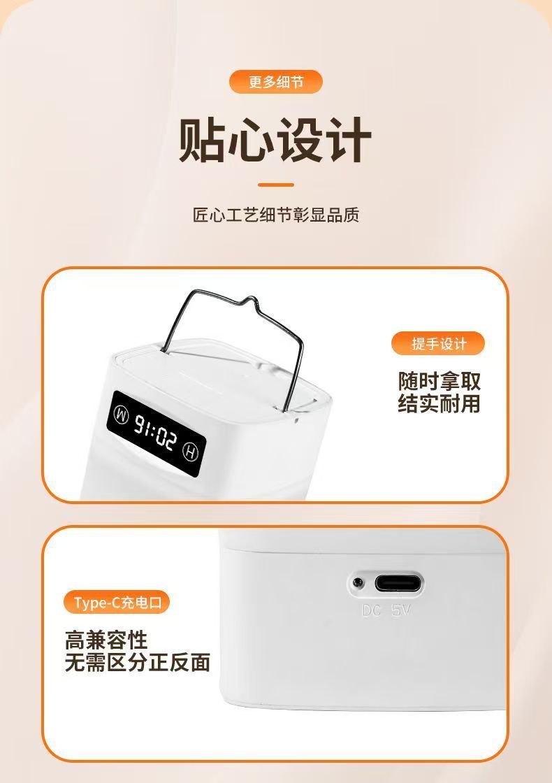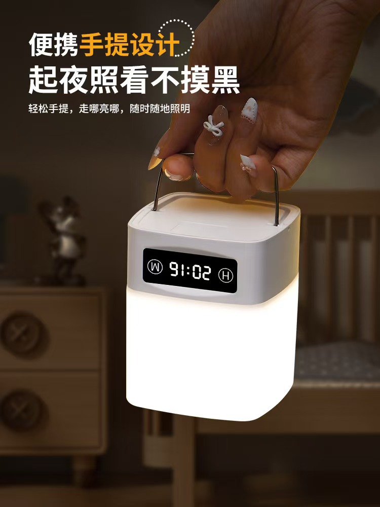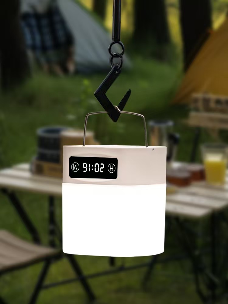 • 회색 벨트와 시계 디스플레이가 있는 충전식 소형 책상 램프