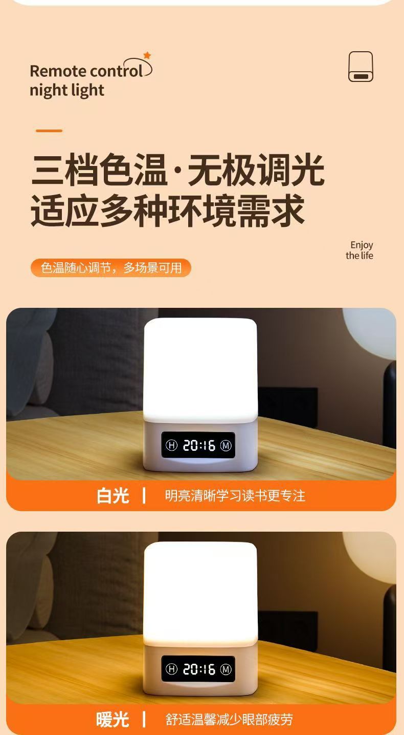 터치 원격 제어 디지털 디스플레이 눈 보호 학습 책상 램프 침실 따뜻한 빛 분위기 램프 다기능 침대 옆 야간 조명