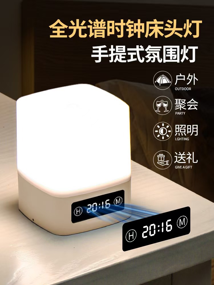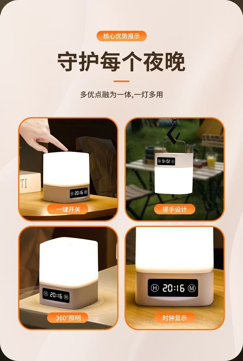 • 시계 디스플레이가 있는 충전식 소형 책상 램프