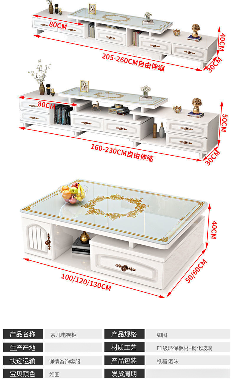 • 1.0m 커피 테이블 + 3단 서랍 TV 캐비닛