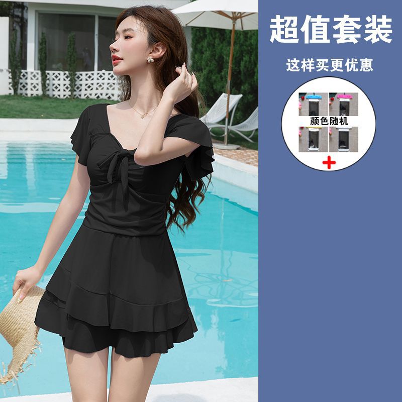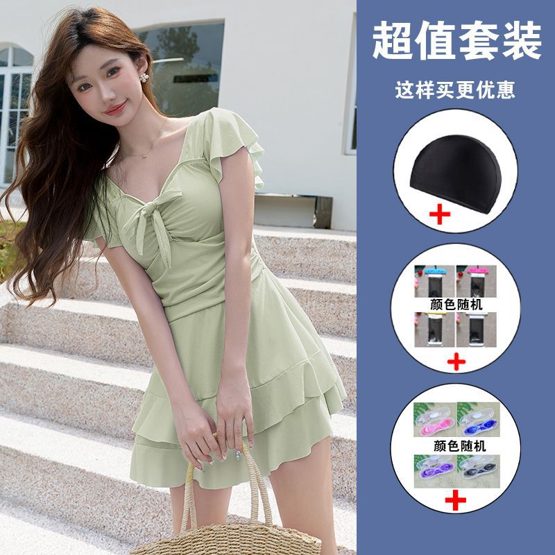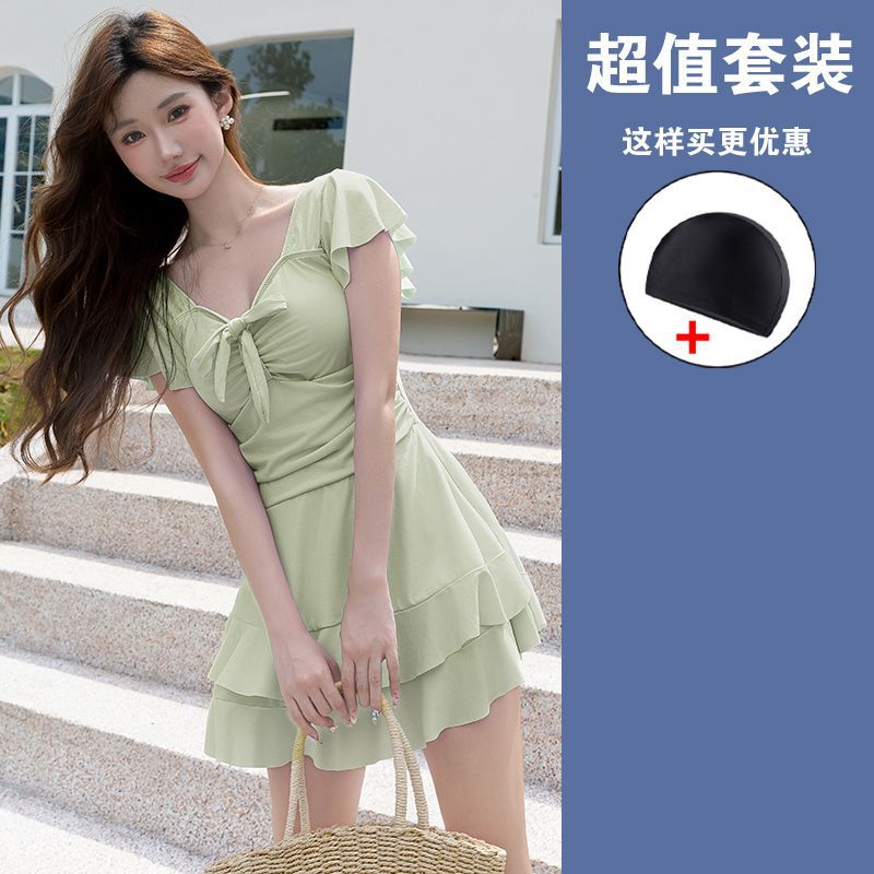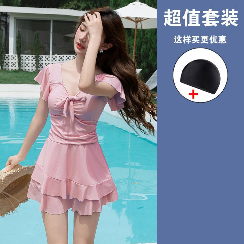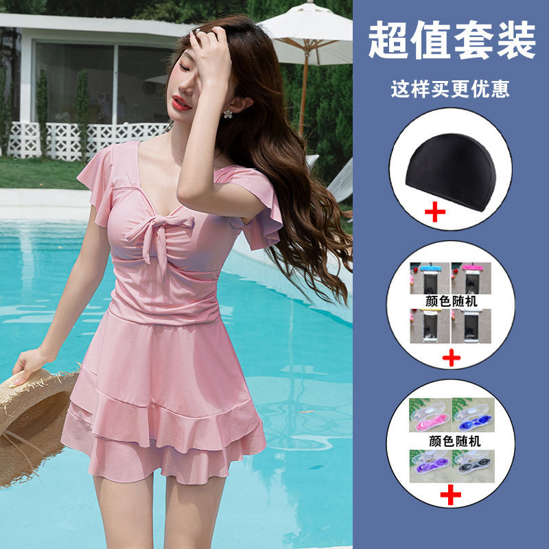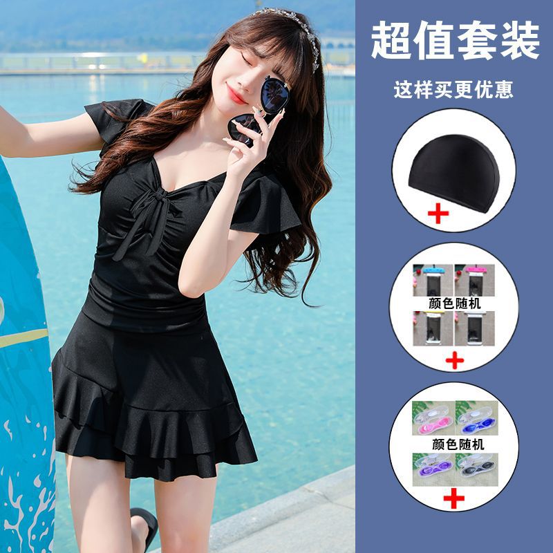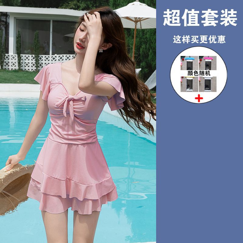 수영복 여성용 원피스 스커트 플러스 사이즈 통통녀 뒤덮인 배꼽 슬림 200 진 증가 온천 약간의 지방 고급 감각 빠른 건조