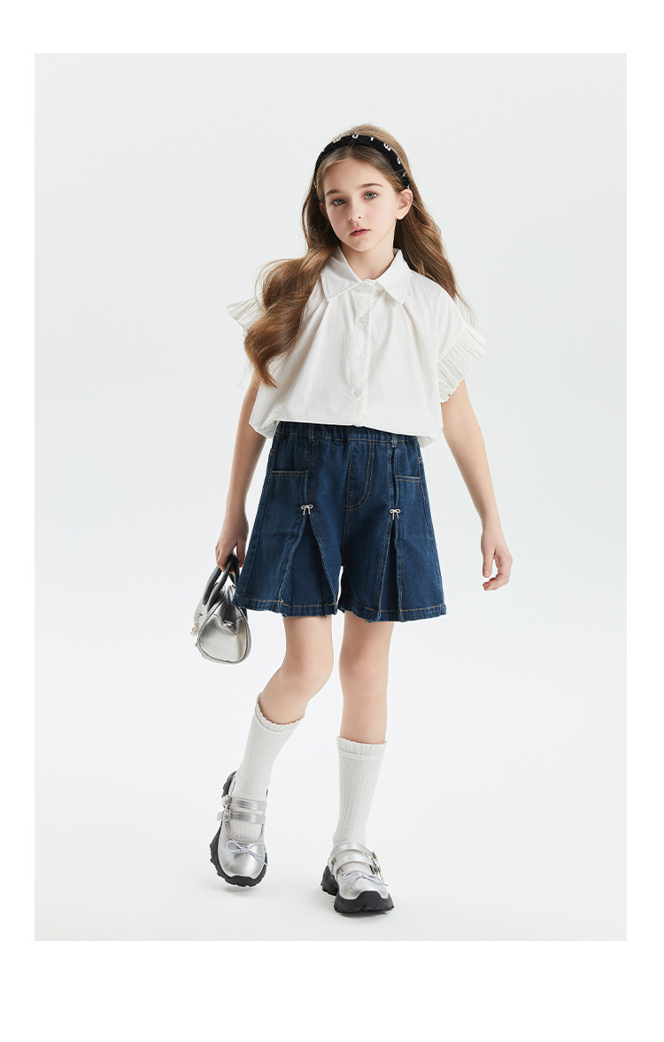 베티 아동복 소녀의 큰 소년 한국 스타일 복고풍 데님 반바지 2025 여름 아동용 세련된 새 패션 바지스토어 가기