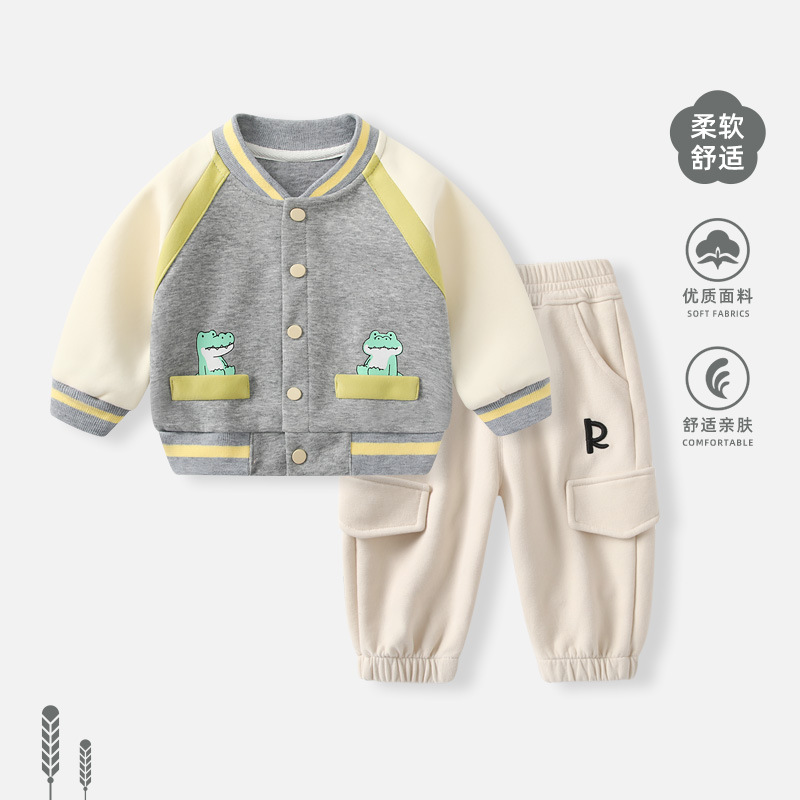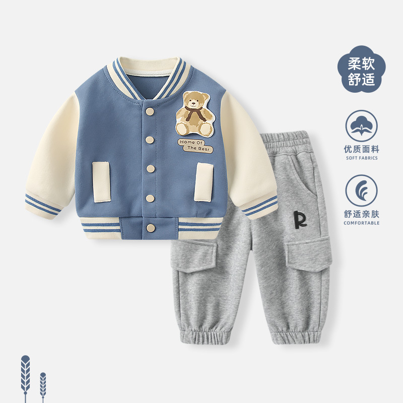 남자 아기의 봄 옷 세트 야구 세트 재킷 소년 및 어린이 봄 캐주얼 옷 아기의 외부 스웨트 팬츠