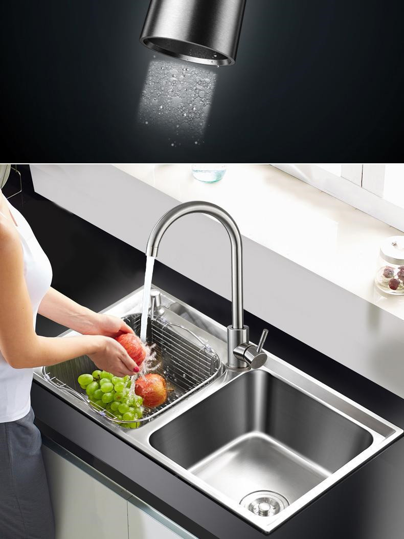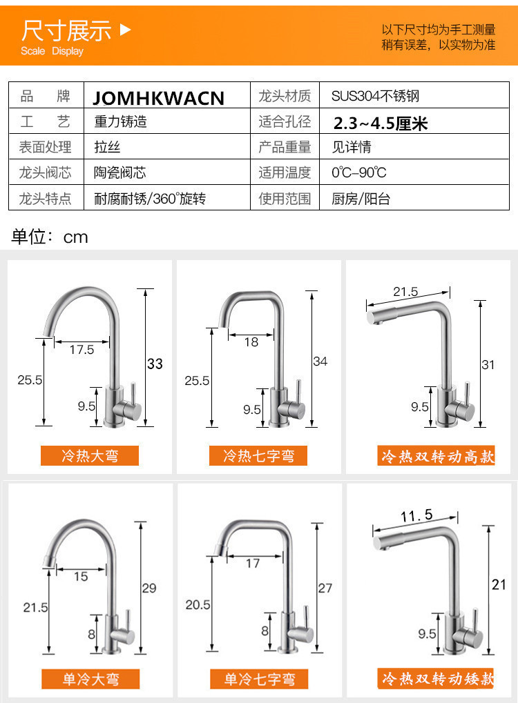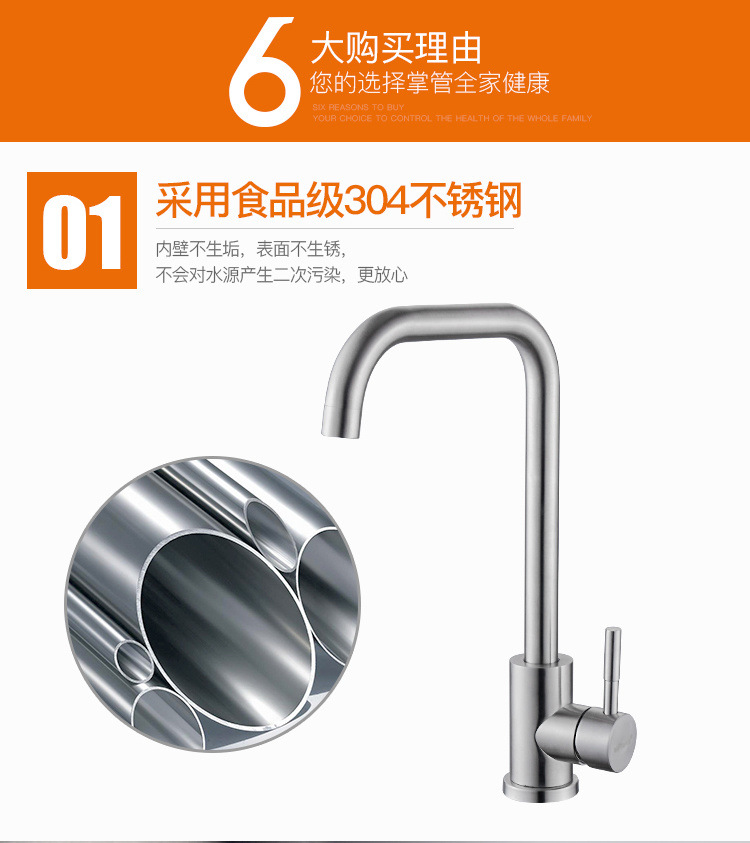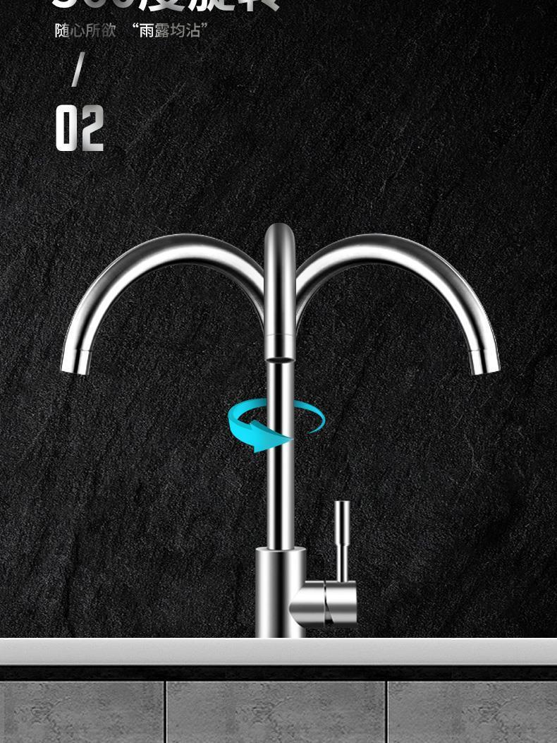 주방 뜨겁고 차가운 수도꼭지 가정용 회전 304 스테인레스 스틸 물 세척 분지 단일 차가운 수도꼭지 스위치 대외 무역 공장스토어 가기