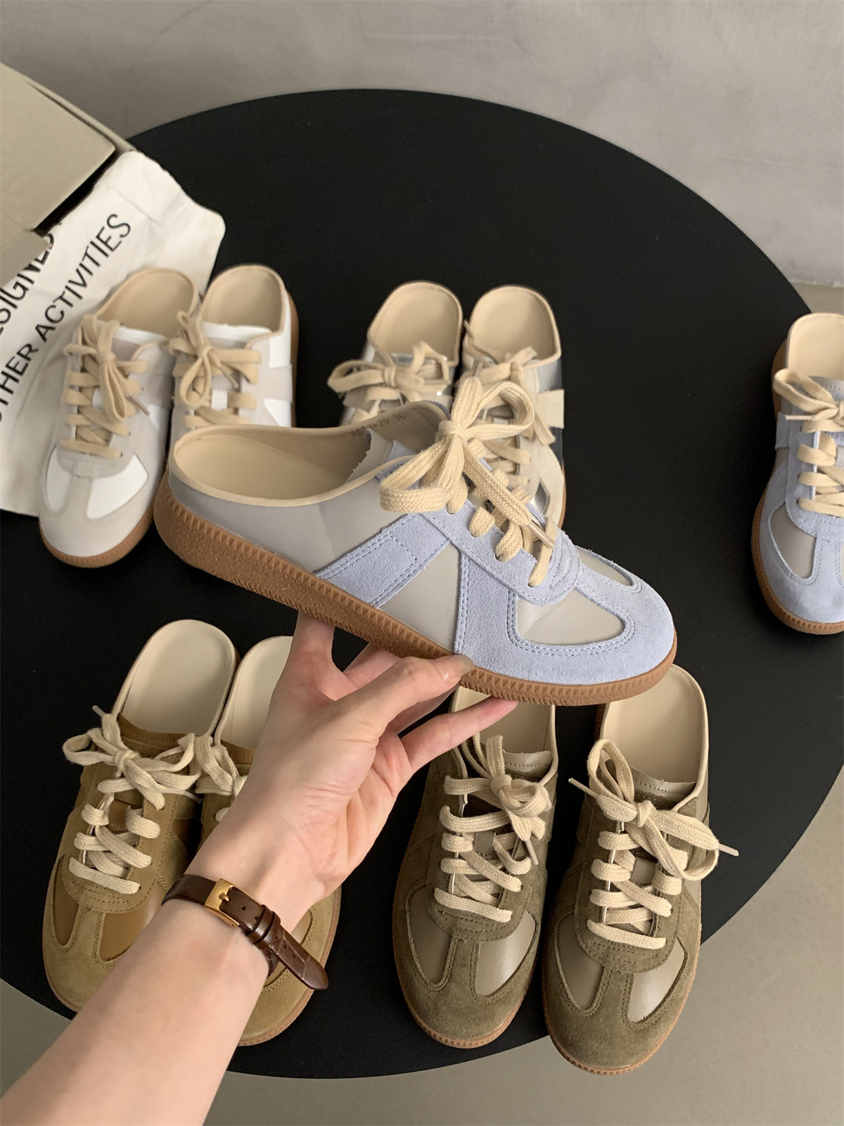 Baotou 하프 슬리퍼 여성용 여름 아우터 2025 새로운 빈티지 독일 트레이닝 슈즈 여성용 두꺼운 싱글 힐 슬립 온 게으른 신발스토어 가기