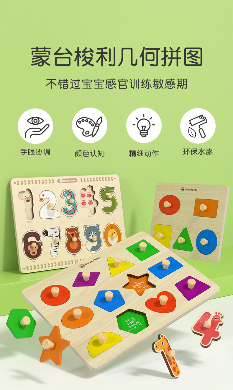 손 잡아 보드 몬테소리 장난감 어린이 조기 교육 장난감 0-3 세 기하학 일치 인지 패널 스테레오 퍼즐스토어 가기