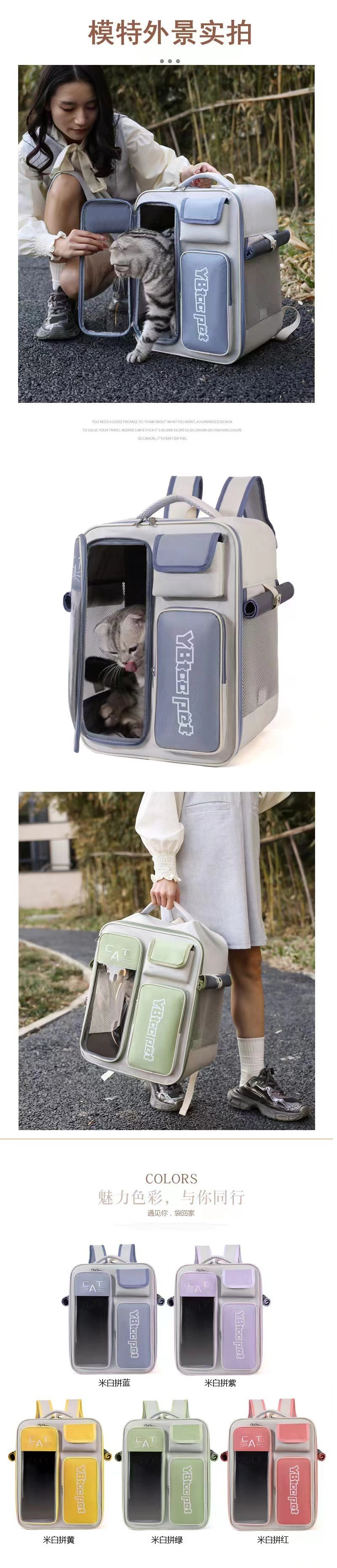고양이 마일즈 가방 접이식 새 스타일 원피스 배낭 고양이와 개를위한 유니버설 고양이 가방 투명 통기성 대용량 배낭스토어 가기