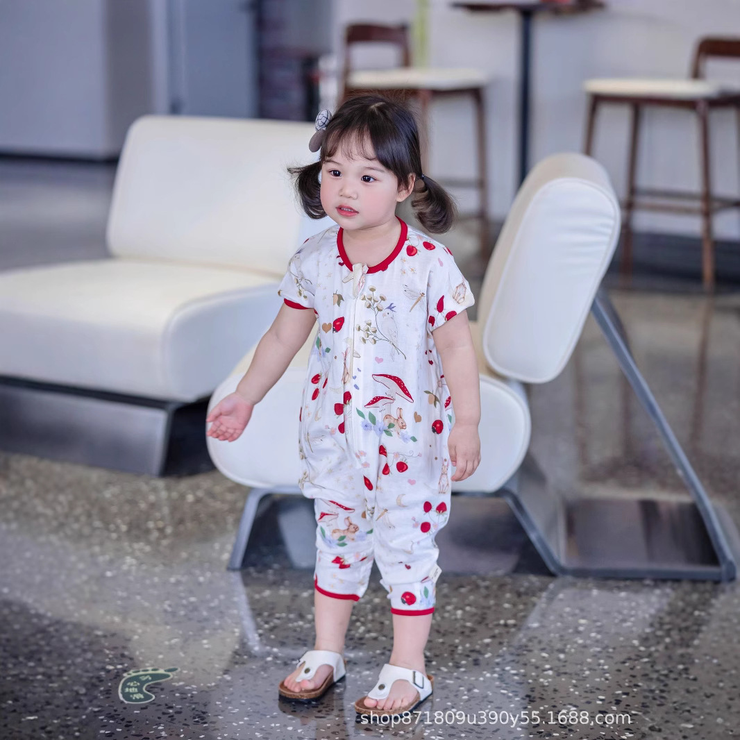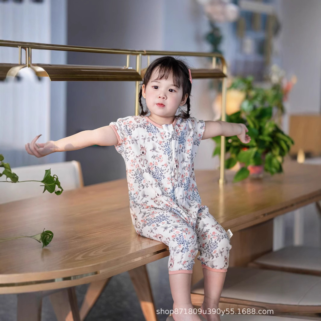 아기의 봄과 여름 얇은 안티 콜드 안티 킥 퀼트 아티팩트 더블 레이어 원사 슬리핑 백 사계절 어린이 반소매 가방스토어 가기