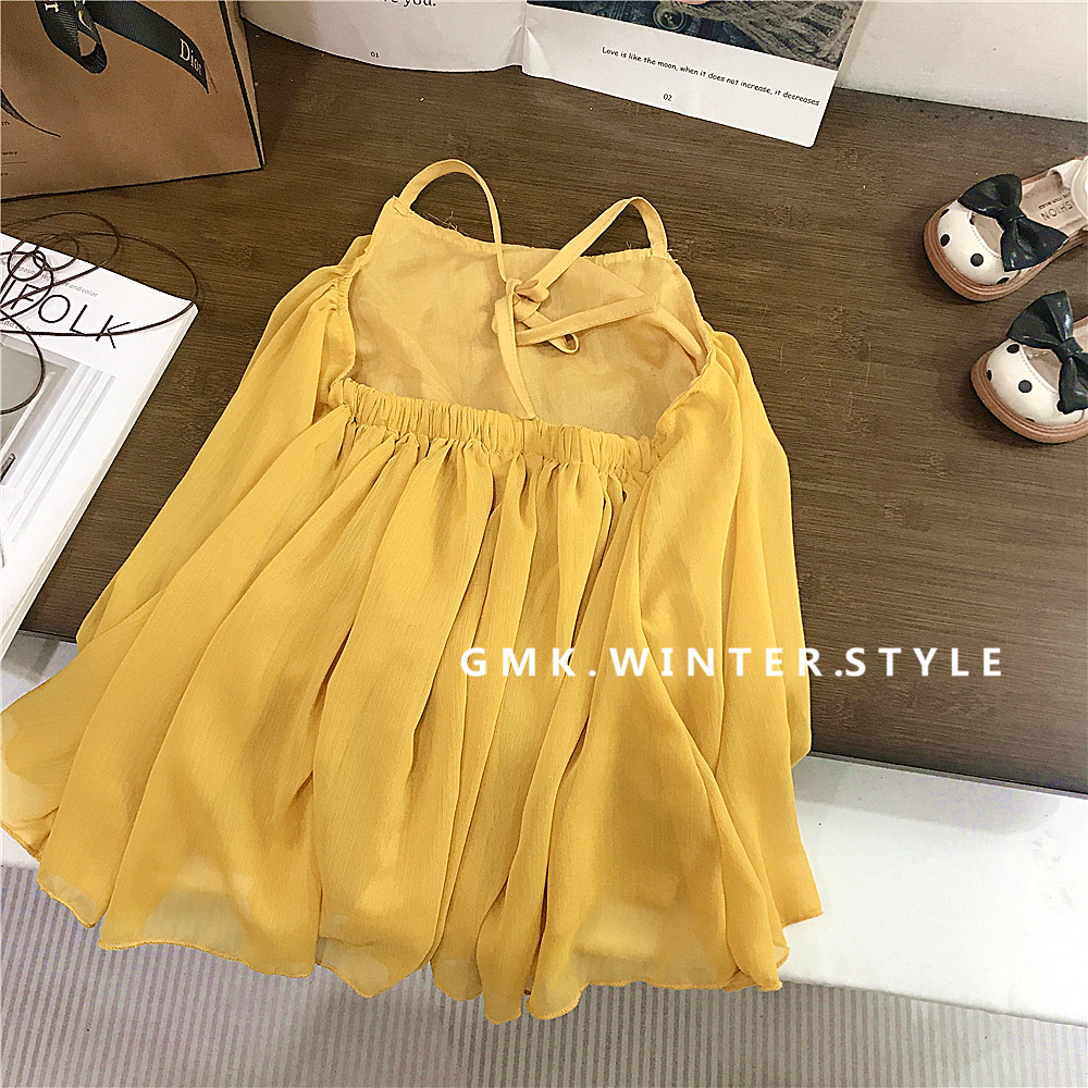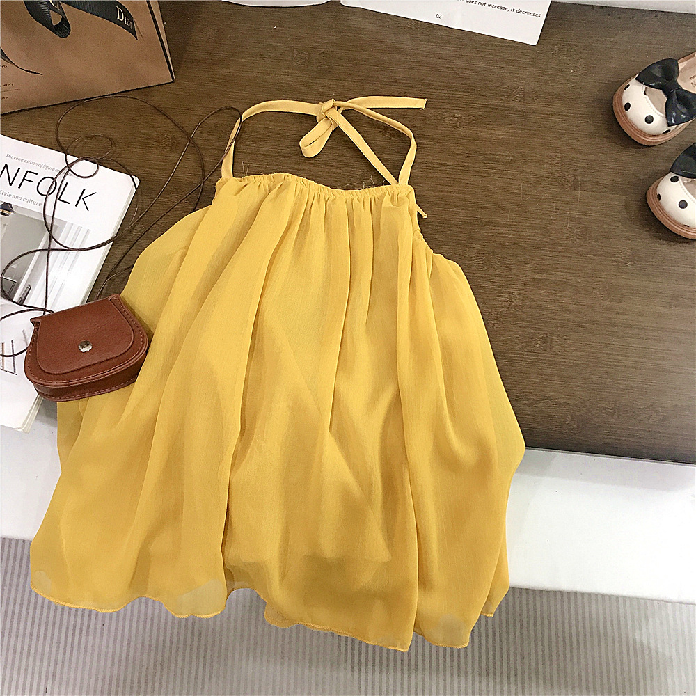 여자 원피스 여름 새 어린이 휴가 휴가 휴가 스커트 한국식 백리스 넥 홀터 스커트스토어 가기