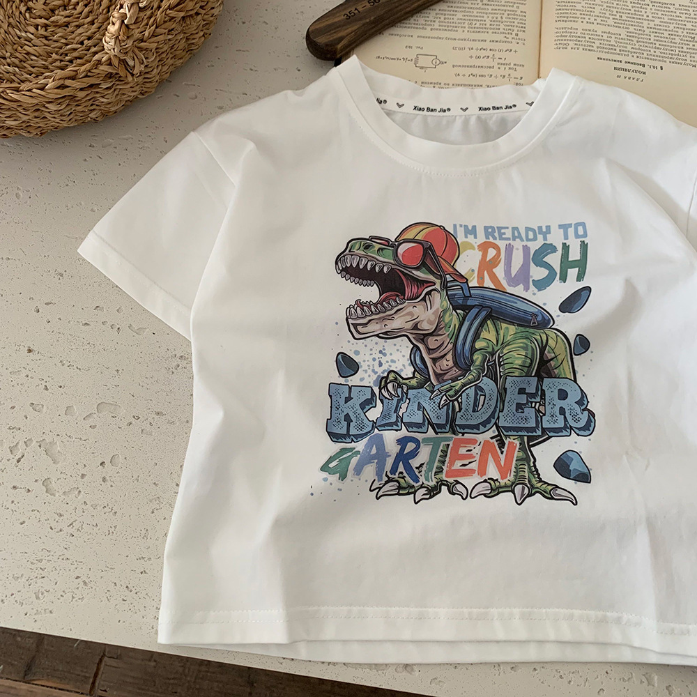 아동복 소년 공룡 반팔 티셔츠 여름 2025 새로운 스타일 서양식 어린이 여름 유행 여성 아기 반소매 티셔츠스토어 가기
