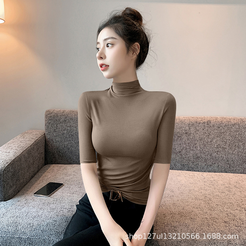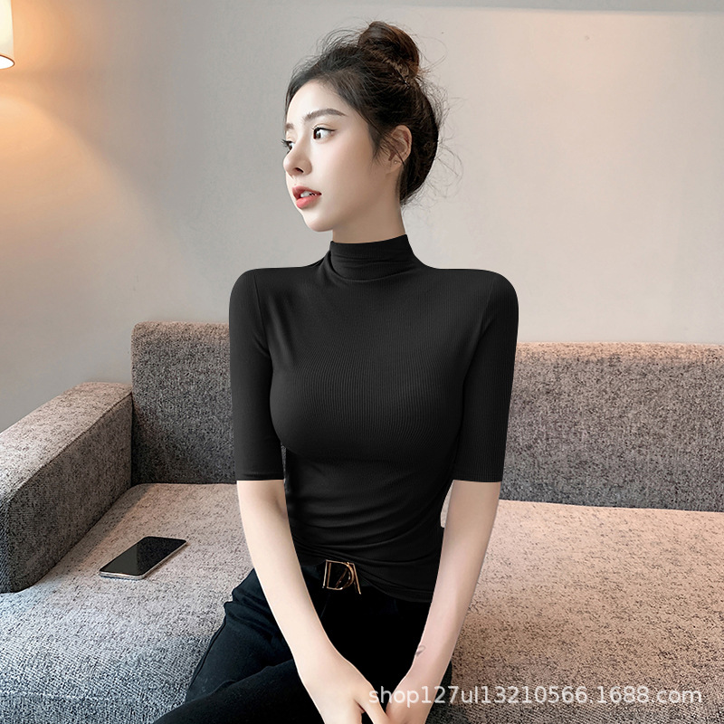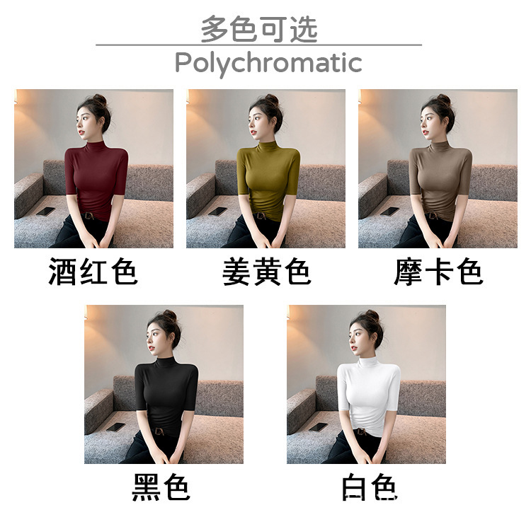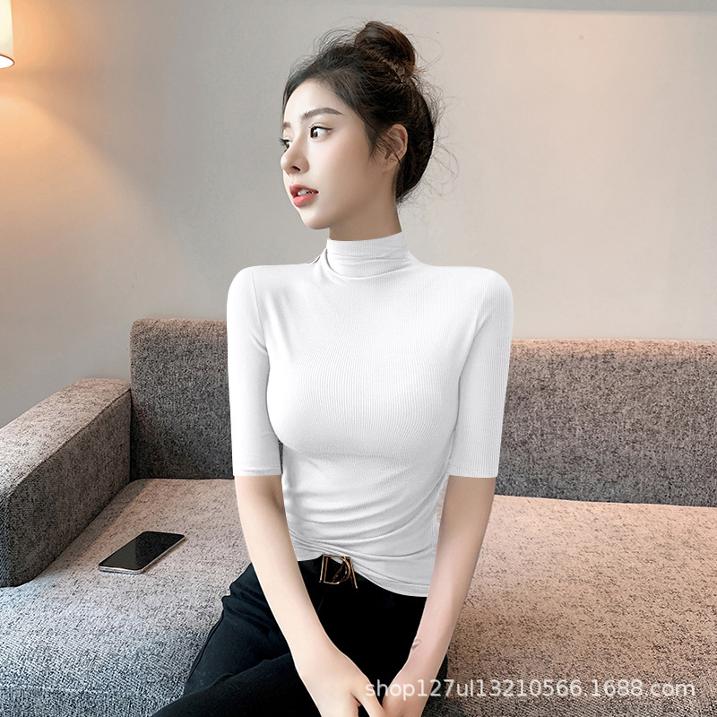 여성 스레드 짧은 소매 티셔츠 새로운 폭발 봄과 여름 고귀한 반 높은 칼라 인기 유행 내베이스 셔츠 탑