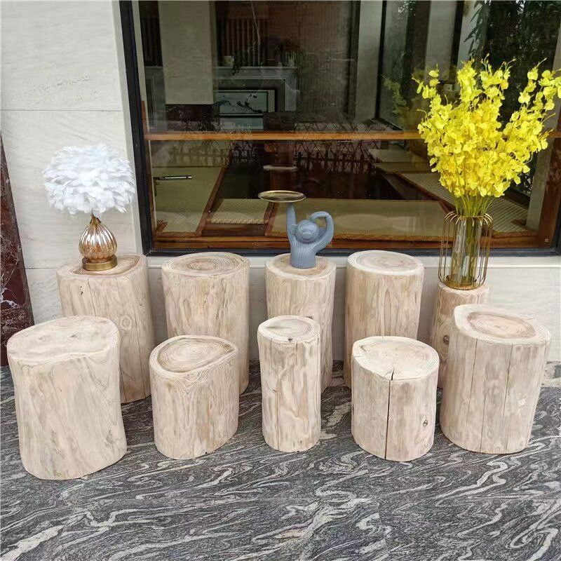 나무 그루터기 단단한 나무 부두 라운드 의자 로그 나무 부두베이스 의류 상점 앉아 의자 가정용 나무 의자 커피 테이블 의자