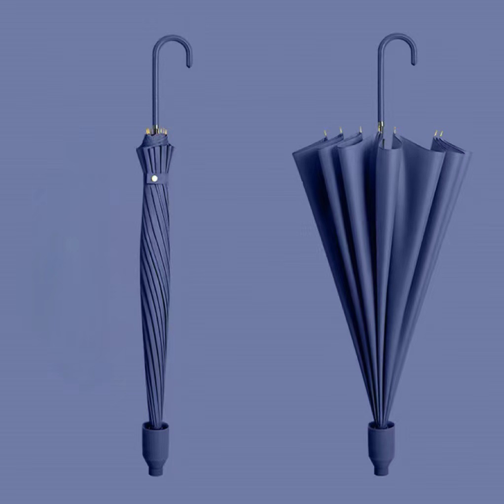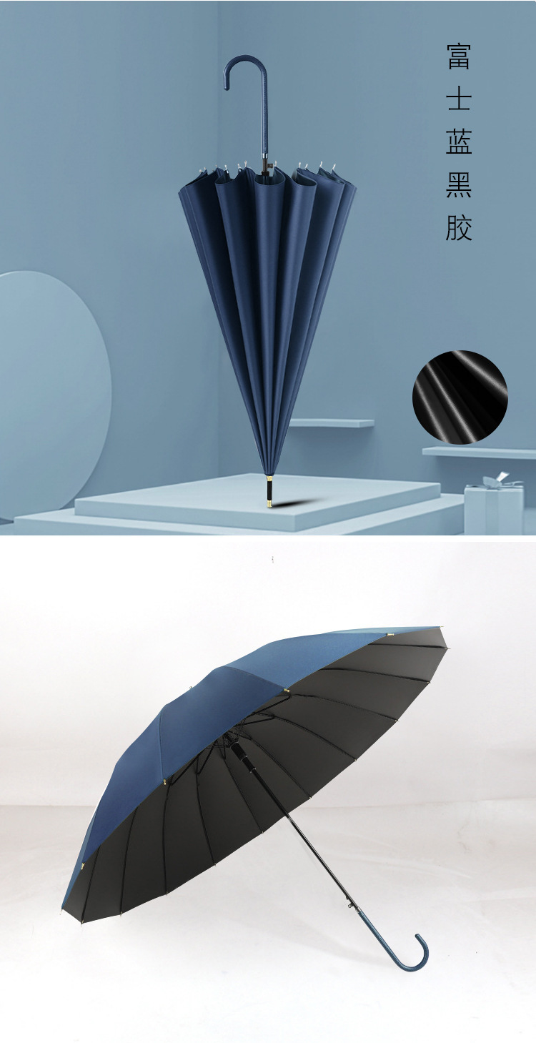 • 네이비 블루 가죽 스트레이트 핸들 16 리브
