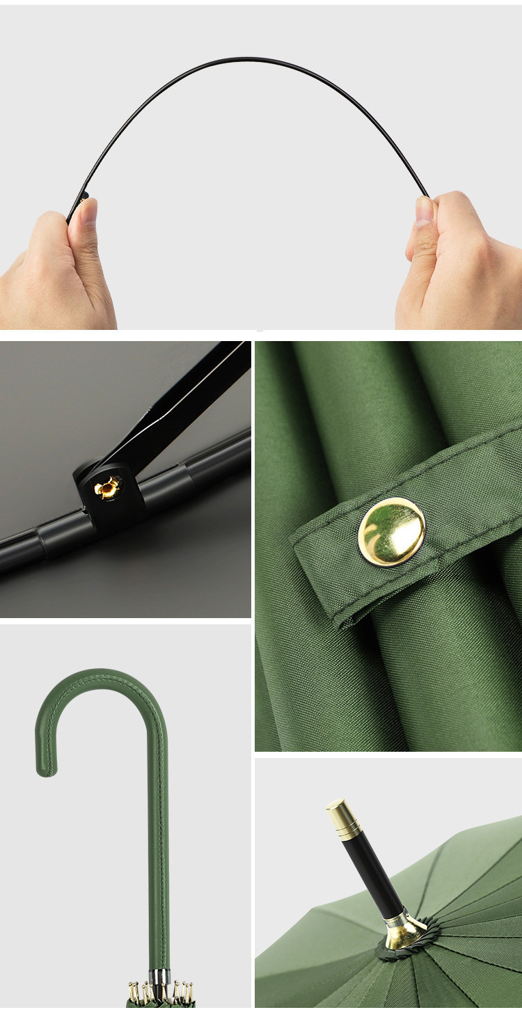 • 카키 그린 가죽 스트레이트 핸들 16본