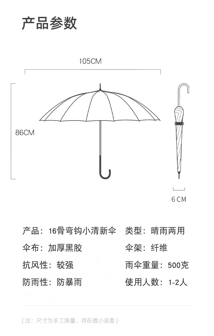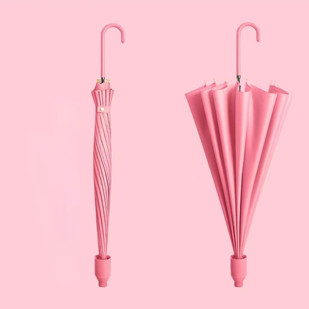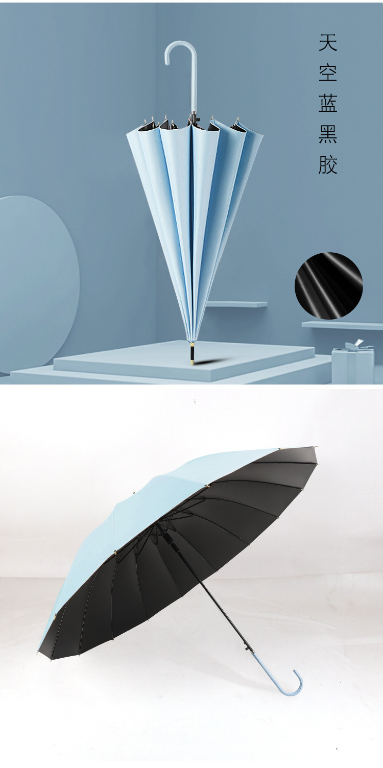 16 뼈 검은 접착제 선스크린 일본 긴 손잡이 스트레이트 우산 레트로 스타일 모리 한국 작은 신선한 써니 우산 광고 선물