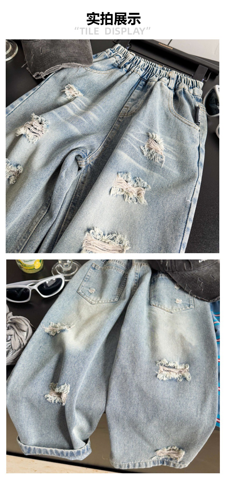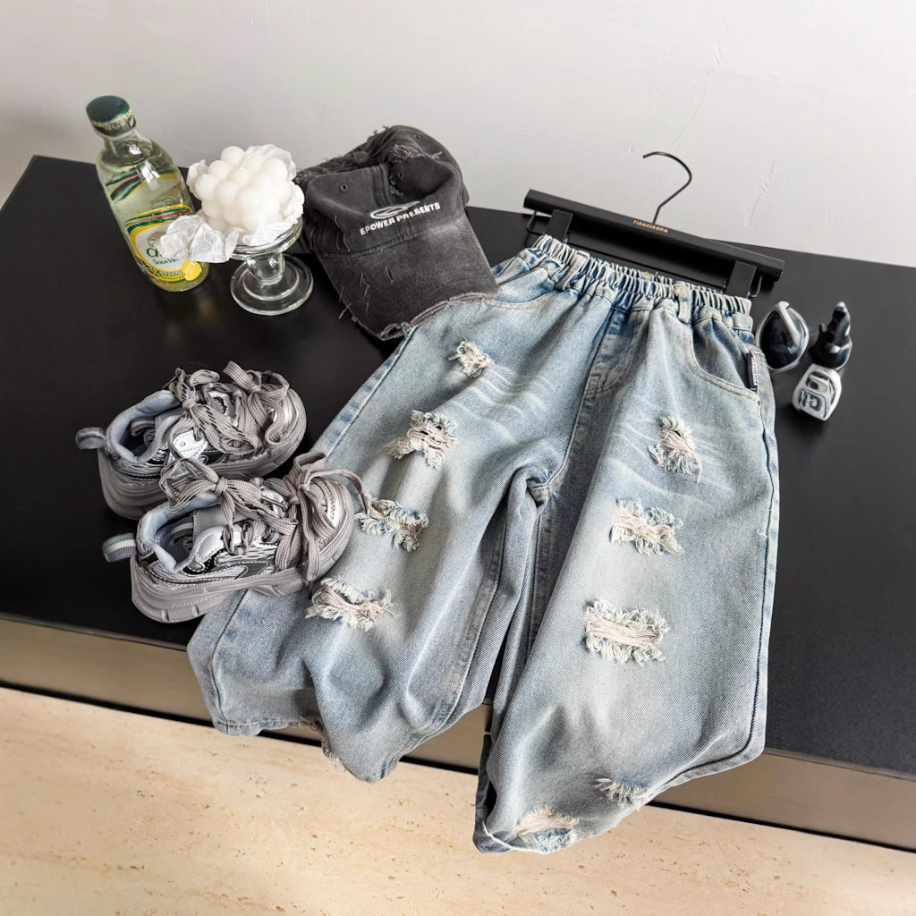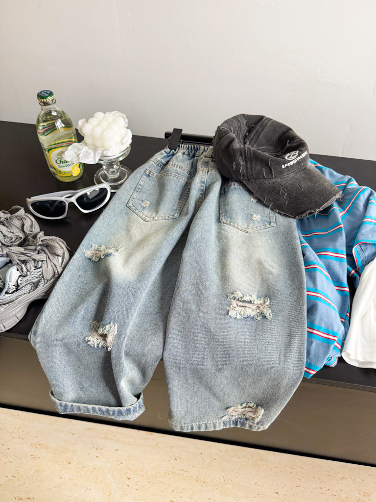 국경 간 어린이 데님 바지 소금 고양이 2025 봄 구멍 캐주얼 어린이 바지 소년 바지 유행스토어 가기