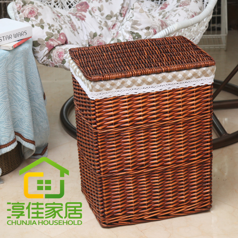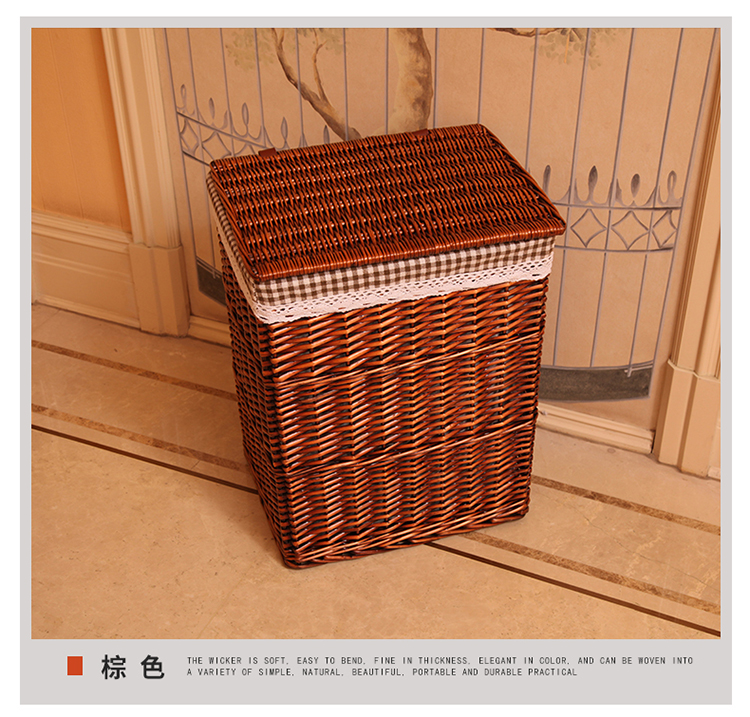 • 큰 사각형 안감이 있는 뚜껑이 있는 갈색 바구니 - 전체 버드나무 뚜껑