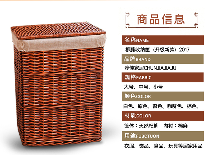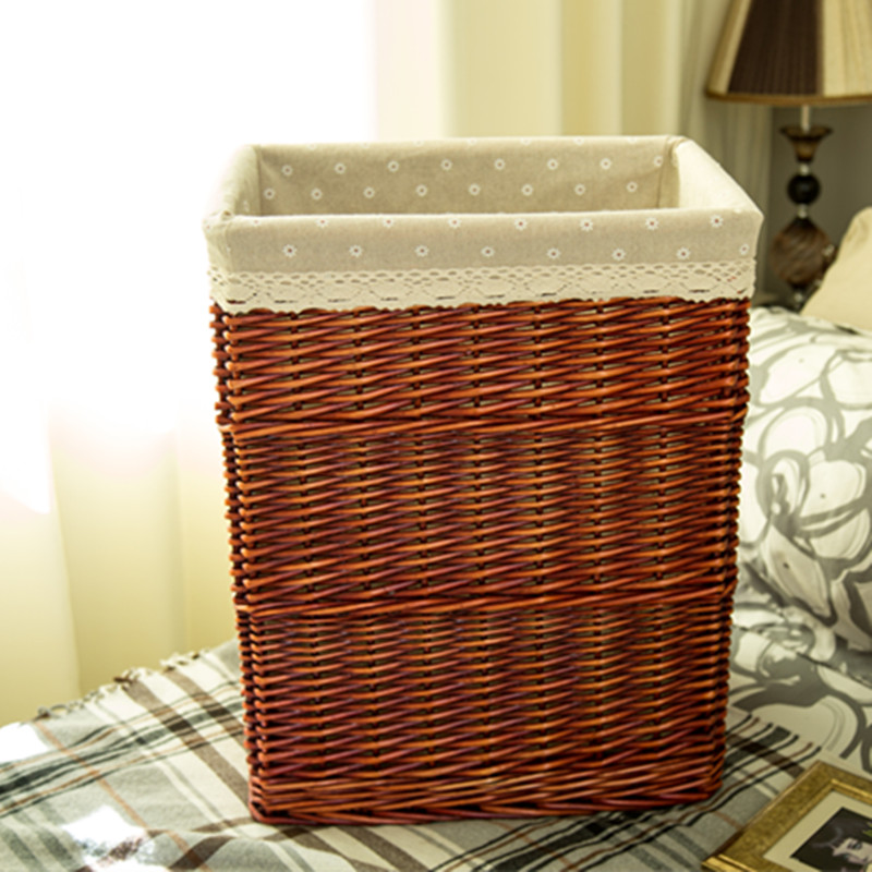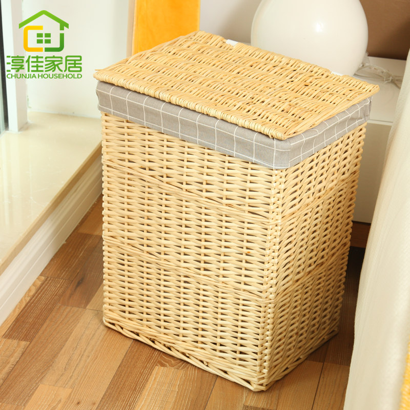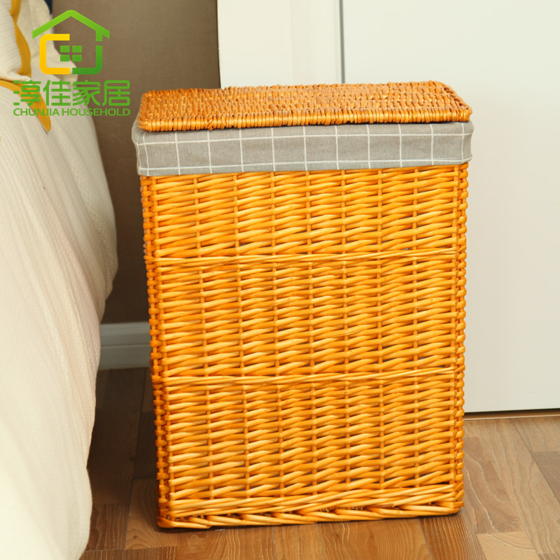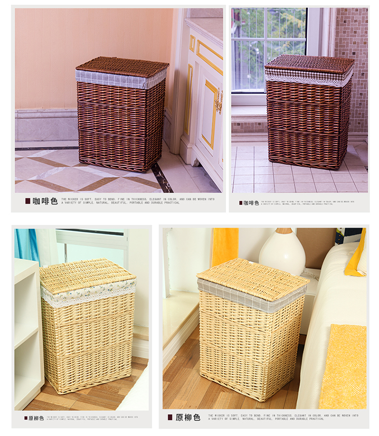 • 뚜껑과 넉넉한 사각형 안감이 있는 오리지널 컬러 바구니 - 전체 버드나무 뚜껑