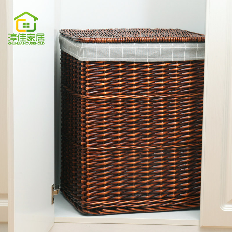 • 리넨 안감이 있는 뚜껑이 있는 갈색 바구니 - 전체 버드나무 뚜껑