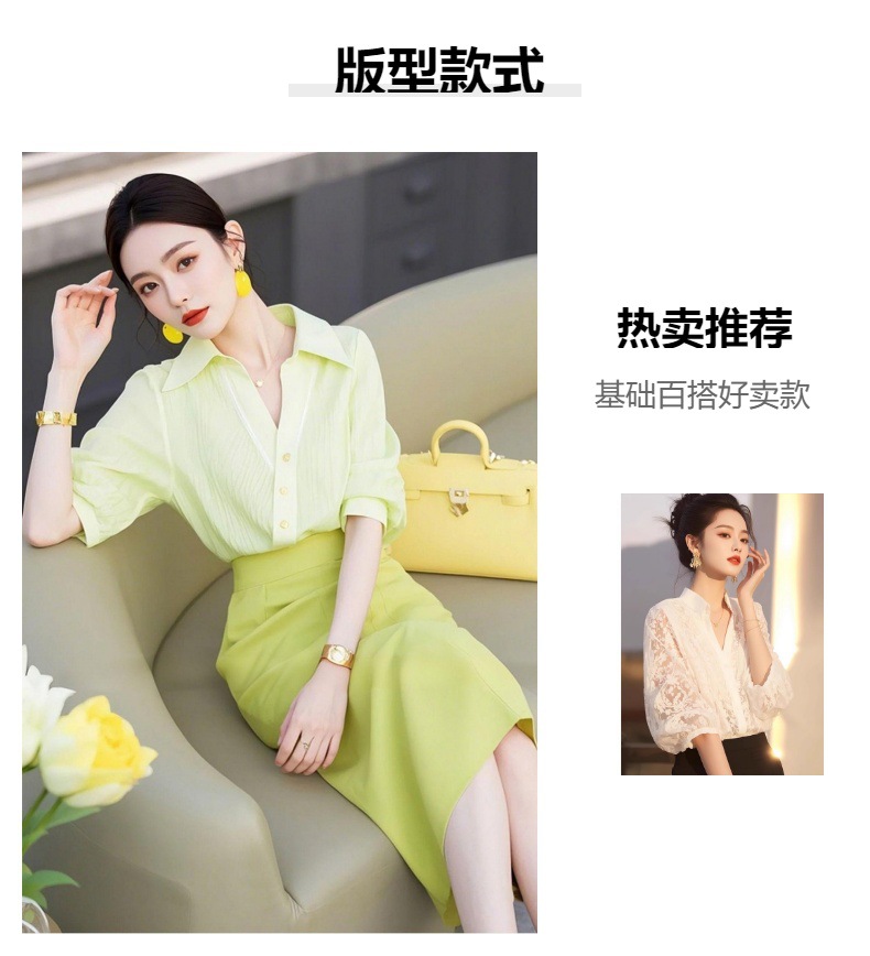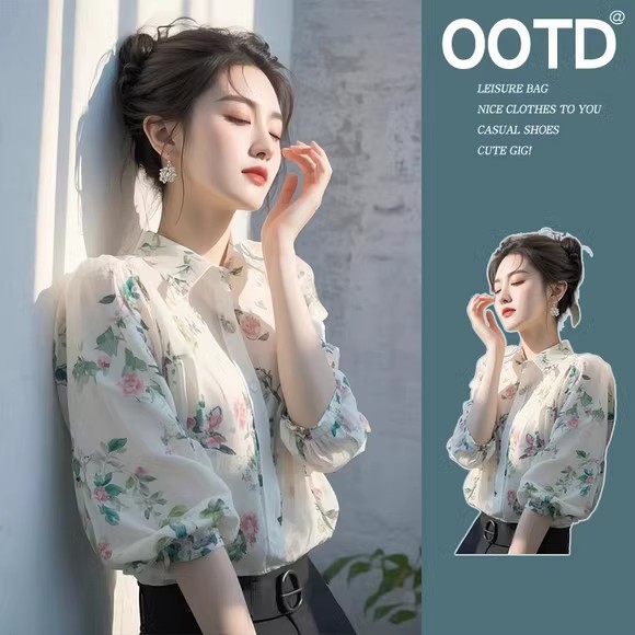 2025 봄 새로운 디자인 센스 니쉬 도파민 화이트 폴로 칼라 여성용 긴팔 탑 스태킹 꽃 셔츠스토어 가기