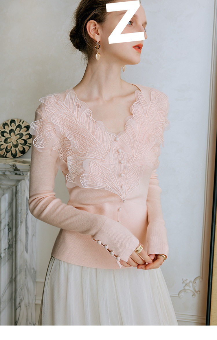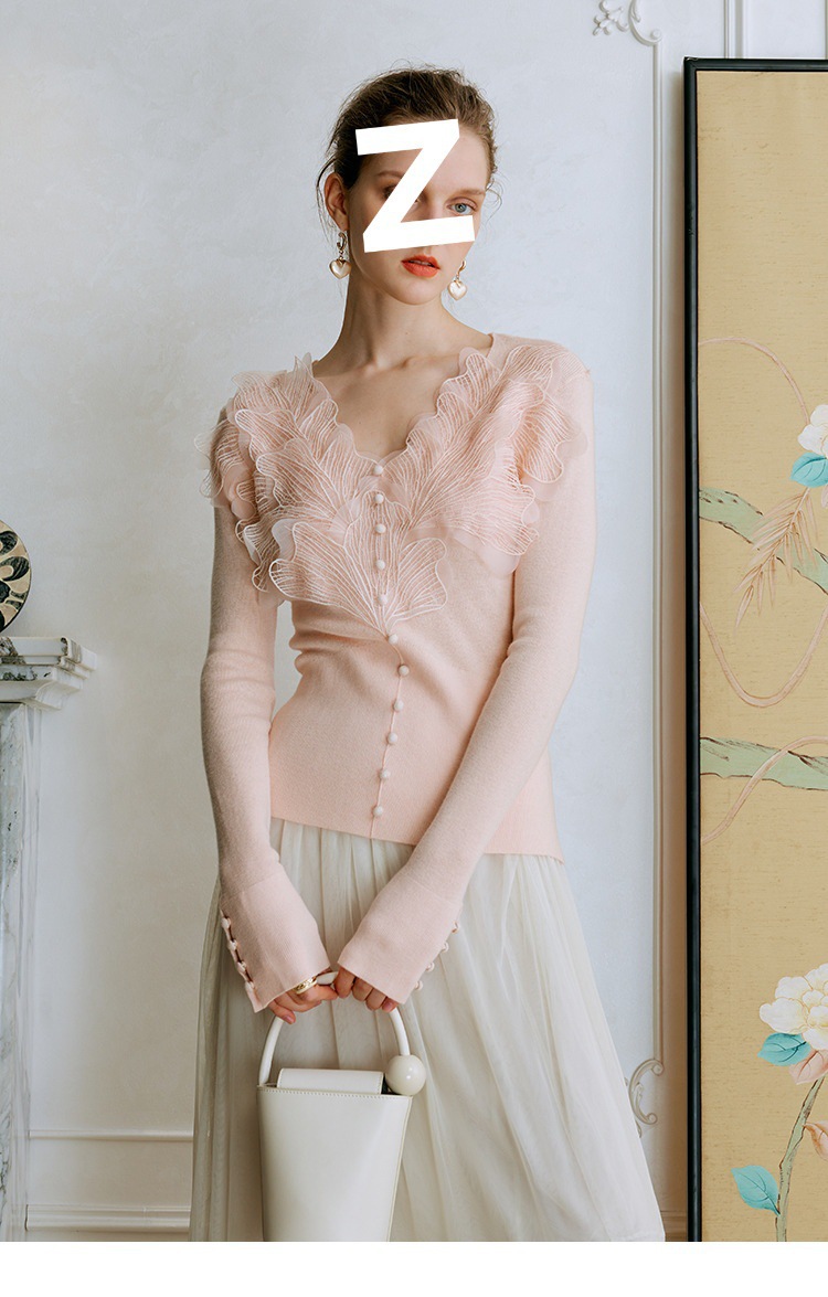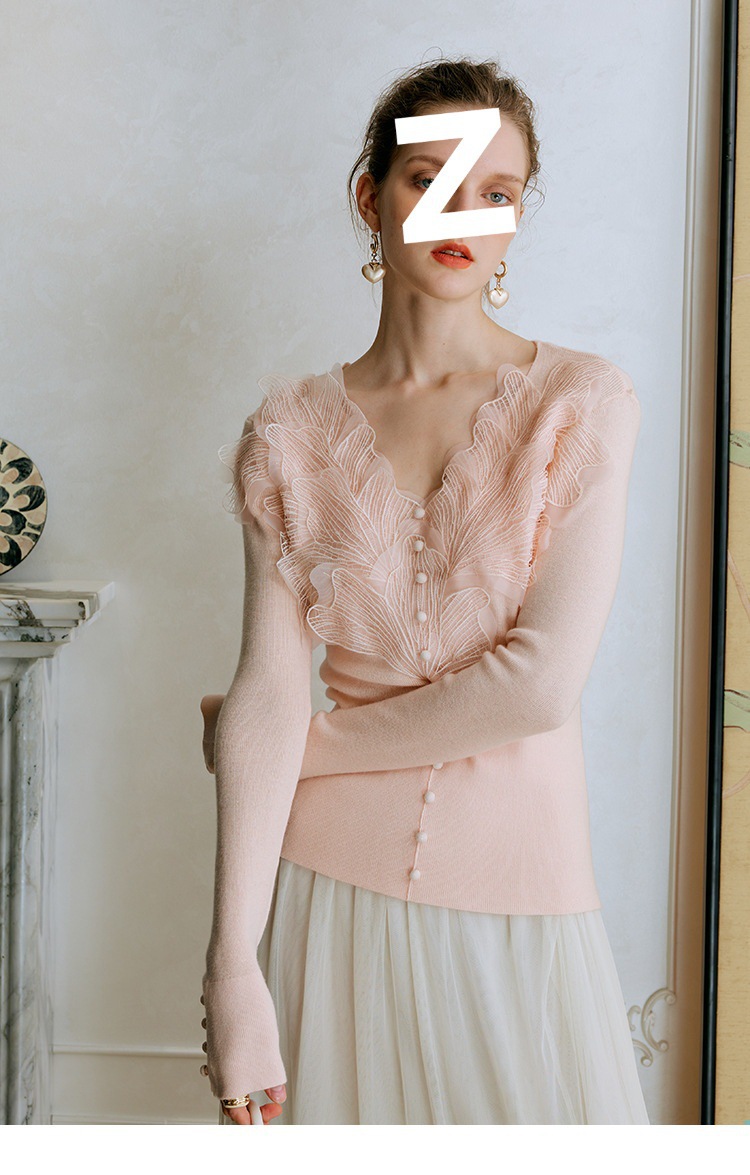 핑크 깃털 울 니트 셔츠베이스 셔츠 여성의 이른 봄 새 레이스 높은 감각 내부 탑스토어 가기