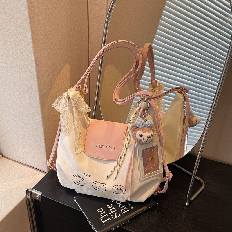 새로운 귀여운 외국식 틈새 패션 간단한 통근 섬유 올 매치 어깨 배낭 여성용 가방스토어 가기