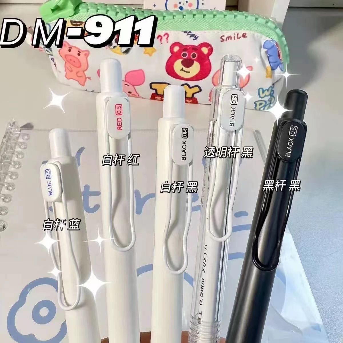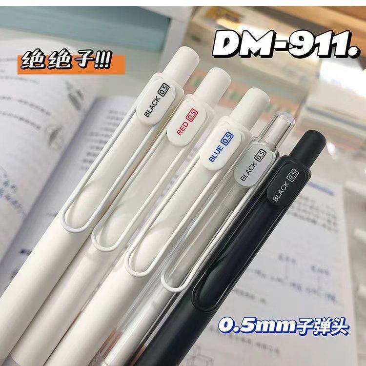 ✅DM-911 프레스 젤 펜 높은 색상 값 간단한 총알 머리 학생 브러시 펜 0.5 블랙 레드 블루