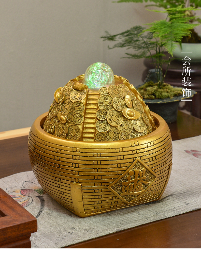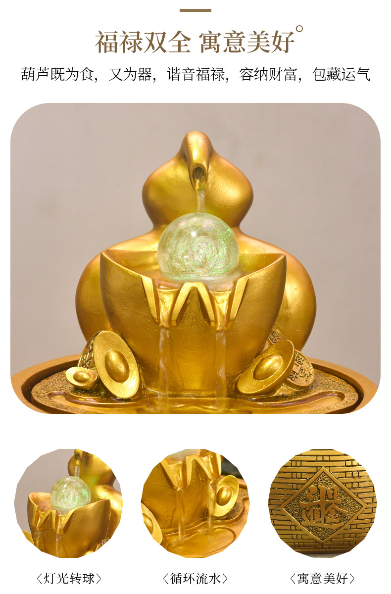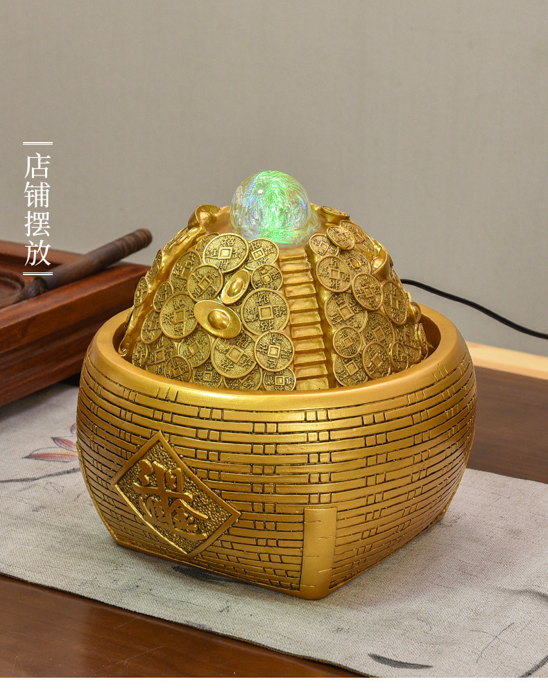 Cornucopia 순환 물 분수 사무실 거실 데스크탑 오프닝 집들이 선물 장식품 행운의 장식품스토어 가기