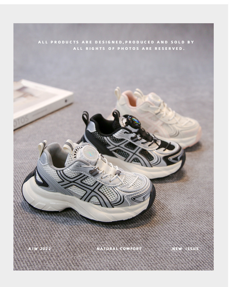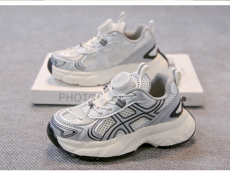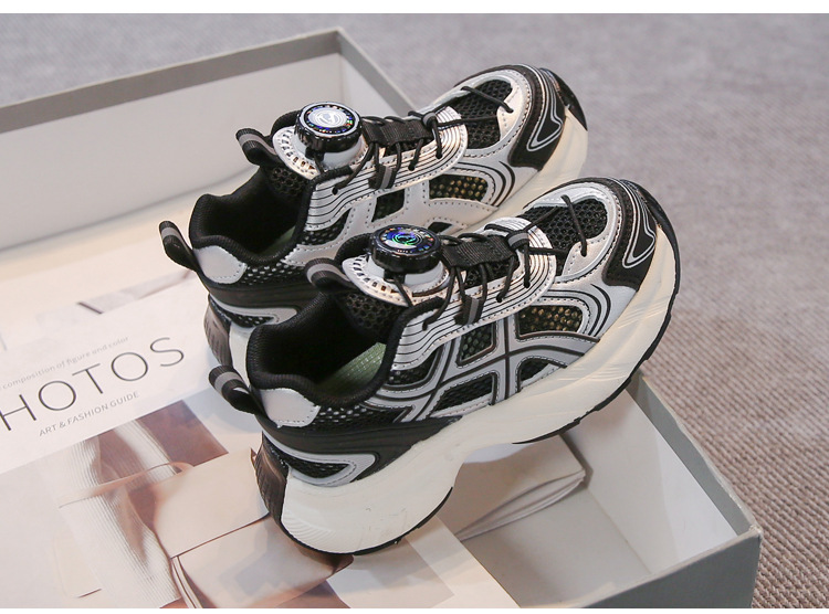 어린이 신발 2025 봄 새로운 한국 스타일 어린이 신발 트렌디 브랜드 회전 버클 토레 신발 경량 스포츠 더블 메쉬 통기성 신발