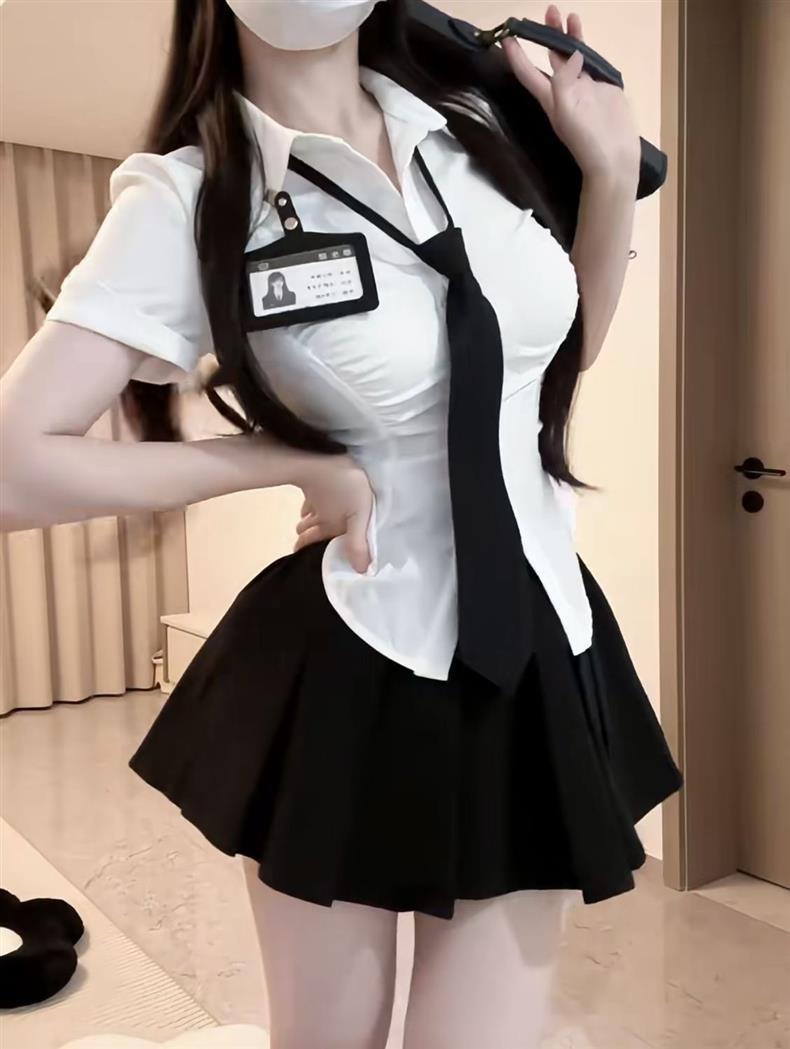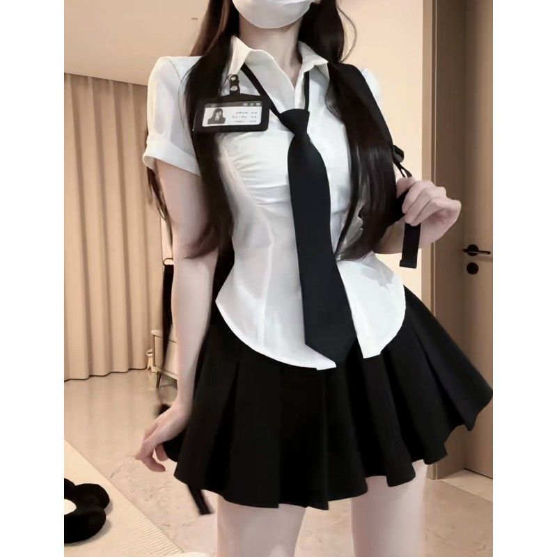 순수한 욕망 스타일 핫 소녀 JK 유니폼 대학 스타일 소녀 주름 불규칙한 허리 셔츠 여성용 하이 웨이스트 플리츠 스커트 슈트스토어 가기