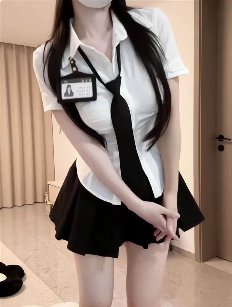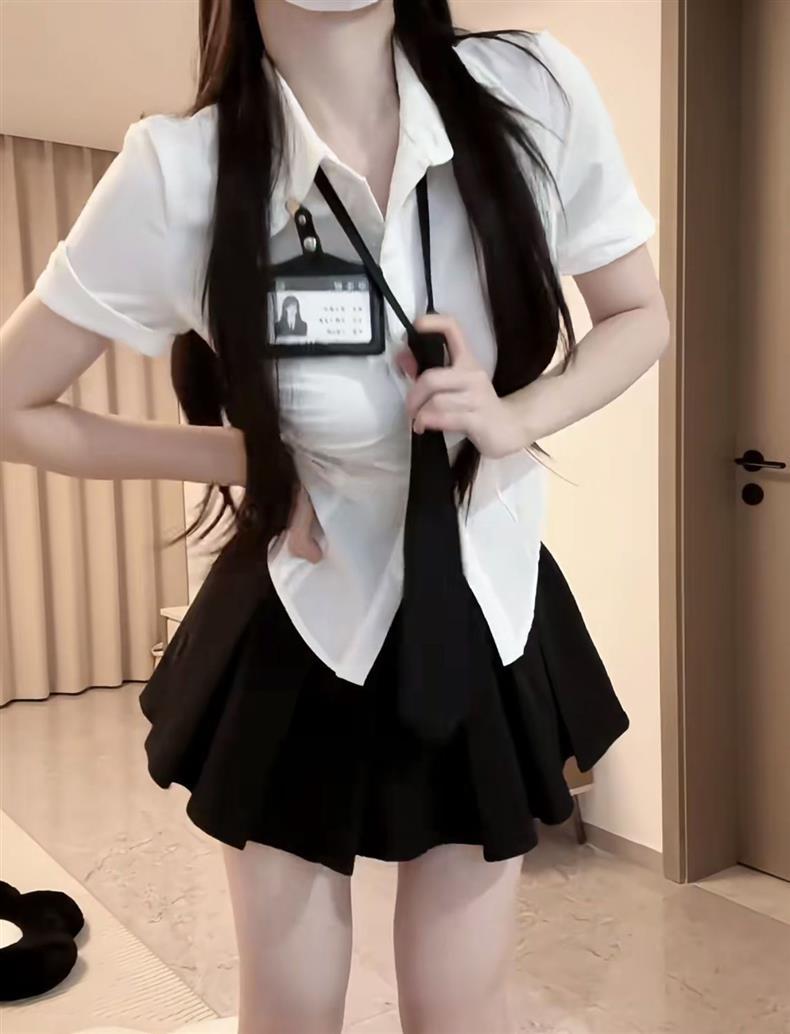 • [3종세트] 화이트 셔츠 + 블랙 타이 + 블랙 스커트