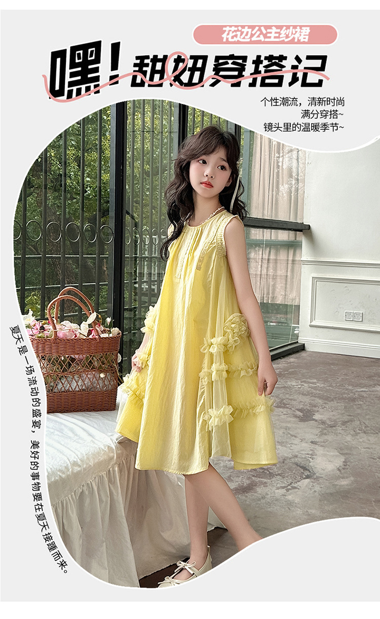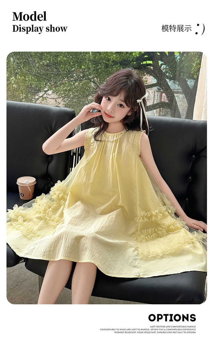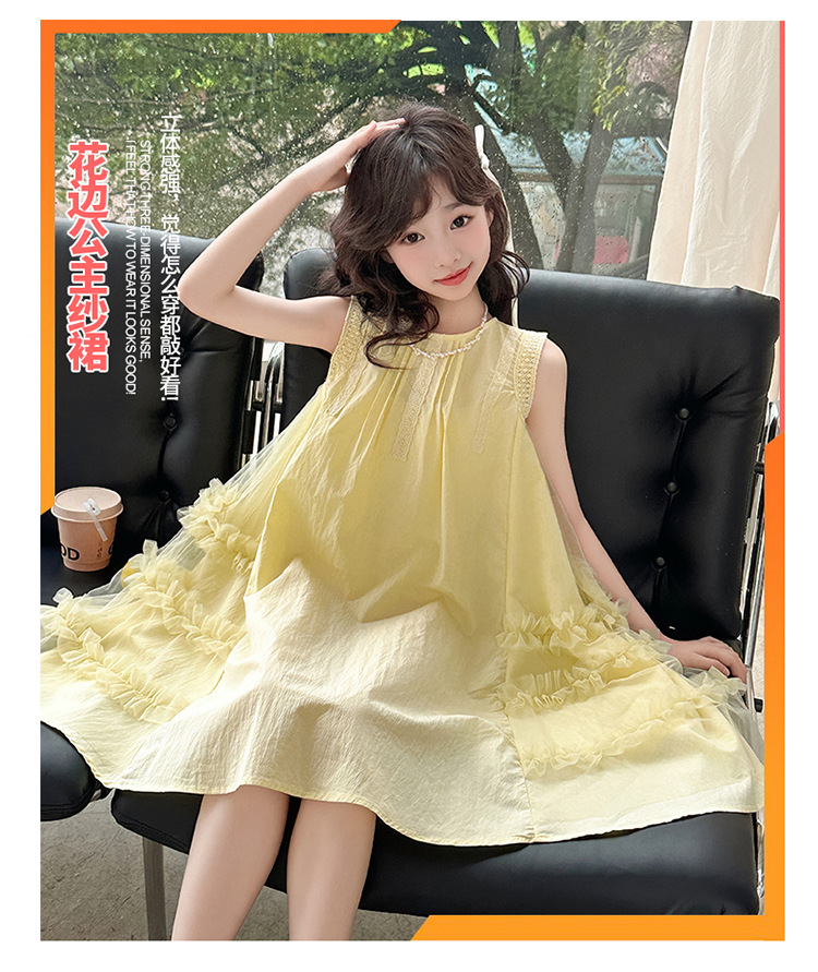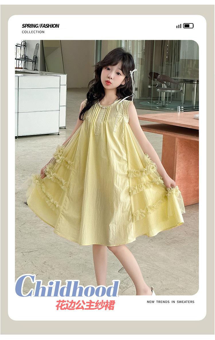 어린이 치마 2025 의 한국판 귀여운 소녀 원피스 레이스 거즈 스커트 큰 어린이 단색 공주 스커트 대외 무역 국경 조수