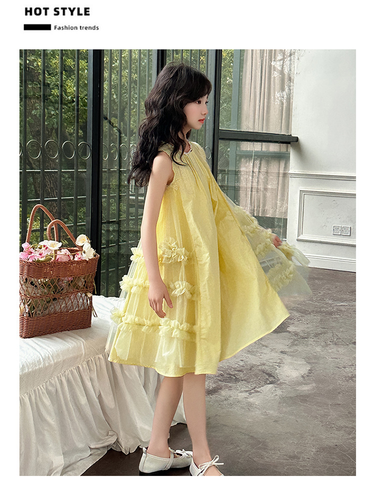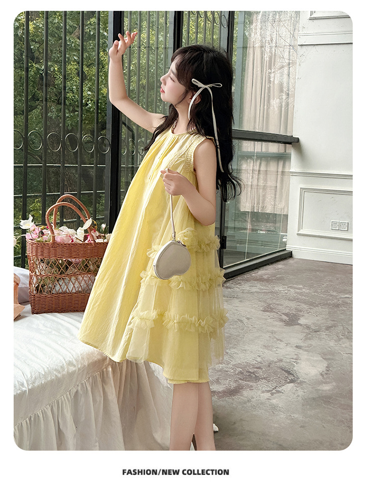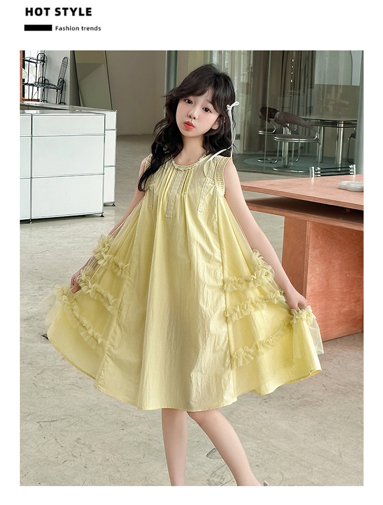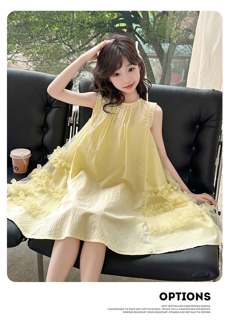어린이 치마 2025 의 한국판 귀여운 소녀 원피스 레이스 거즈 스커트 큰 어린이 단색 공주 스커트 대외 무역 국경 조수