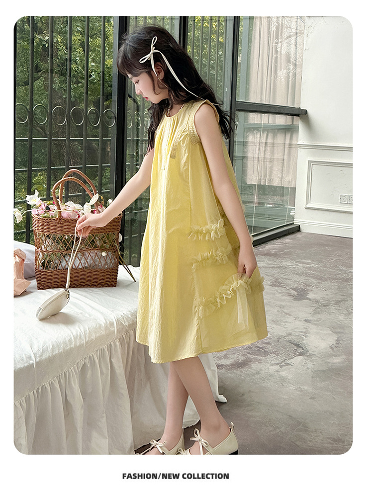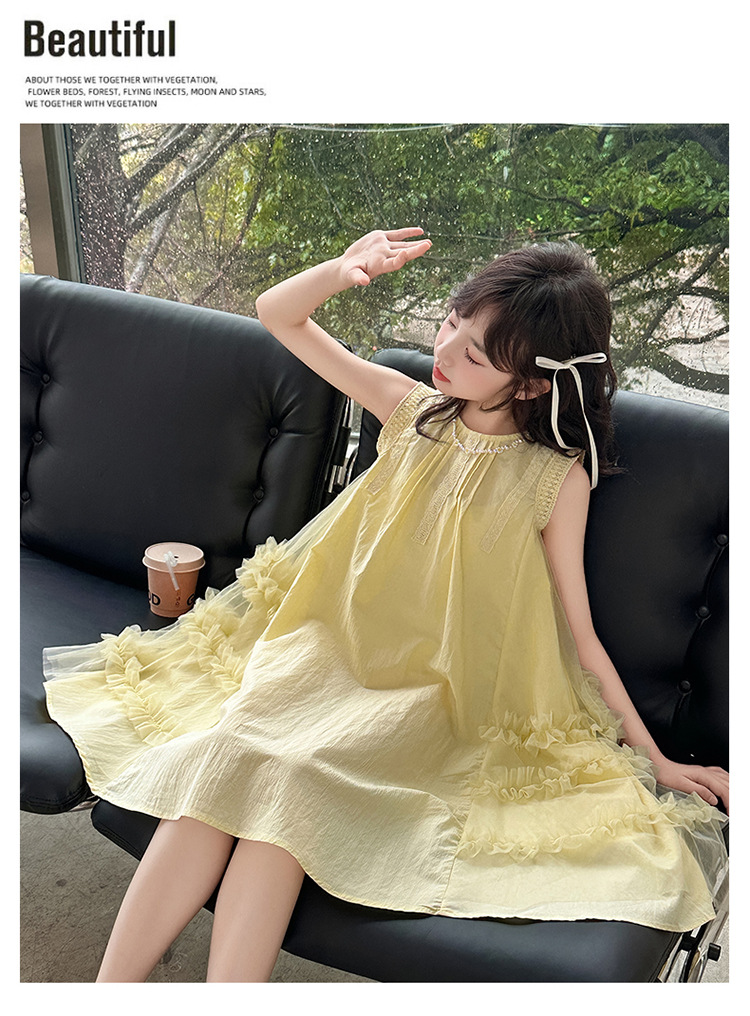 어린이 치마 2025 의 한국판 귀여운 소녀 원피스 레이스 거즈 스커트 큰 어린이 단색 공주 스커트 대외 무역 국경 조수스토어 가기