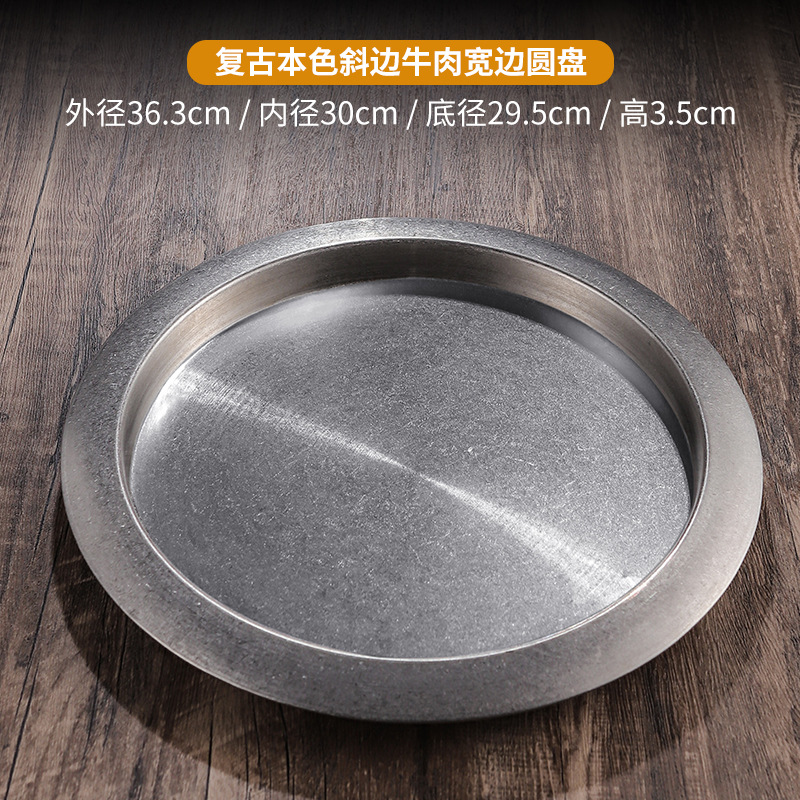 • 36cm 단층 쇠고기 와이드 림 디스크 - 빈티지 실버