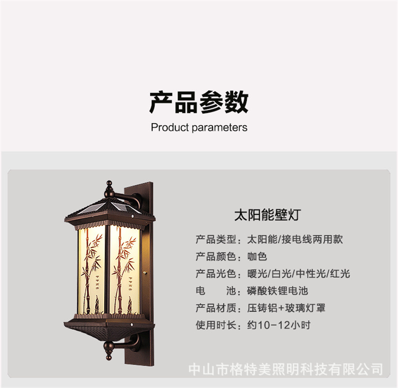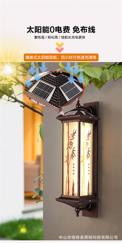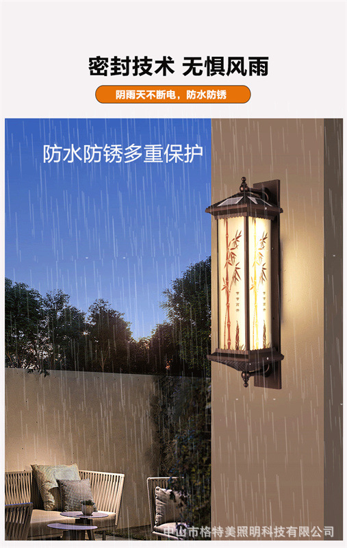 새로운 중국 스타일 새로운 야외 방수 벽 램프 야외 통로 벽 램프 태양 빌라 복도 새로운 안뜰 햇빛