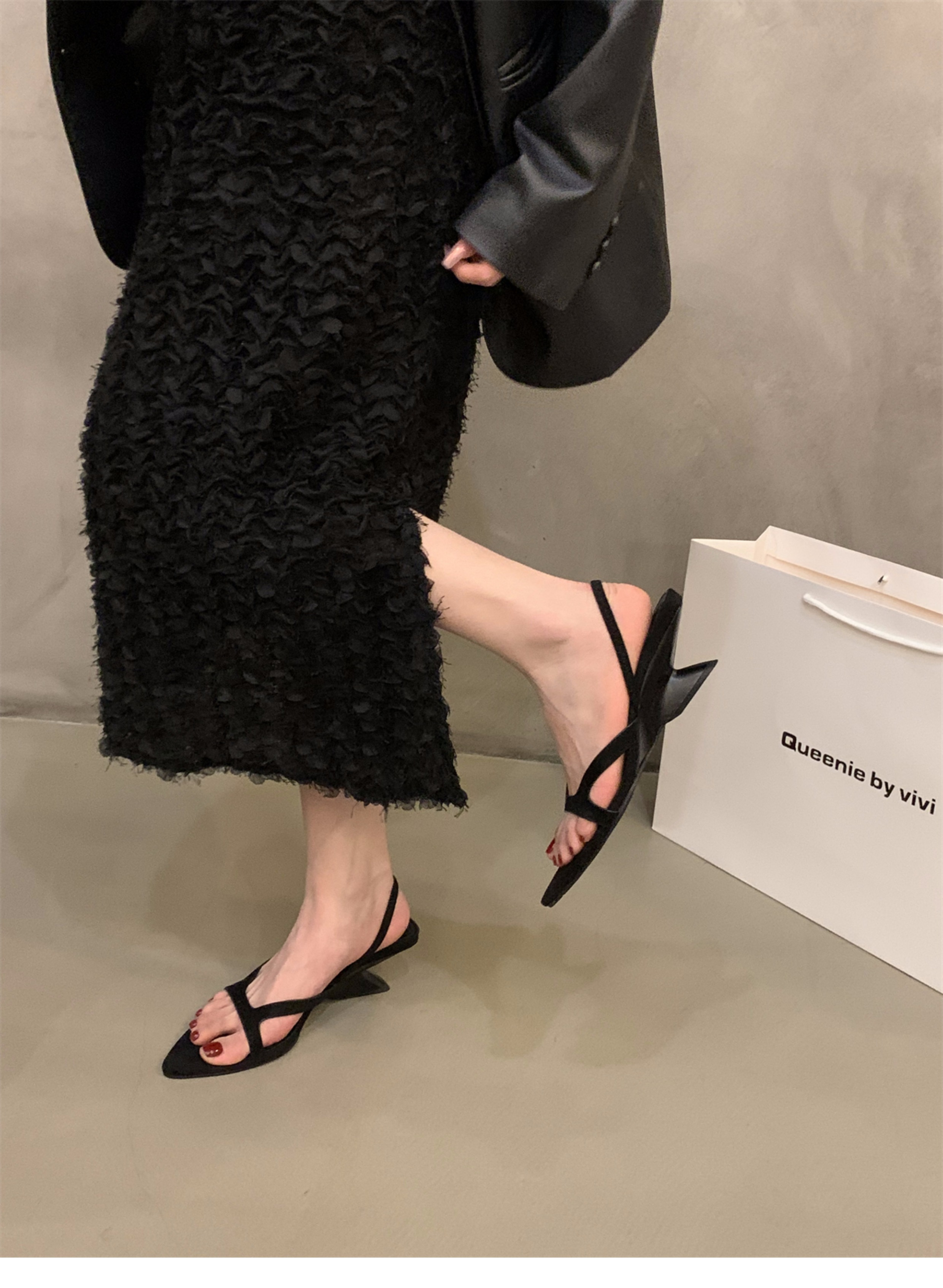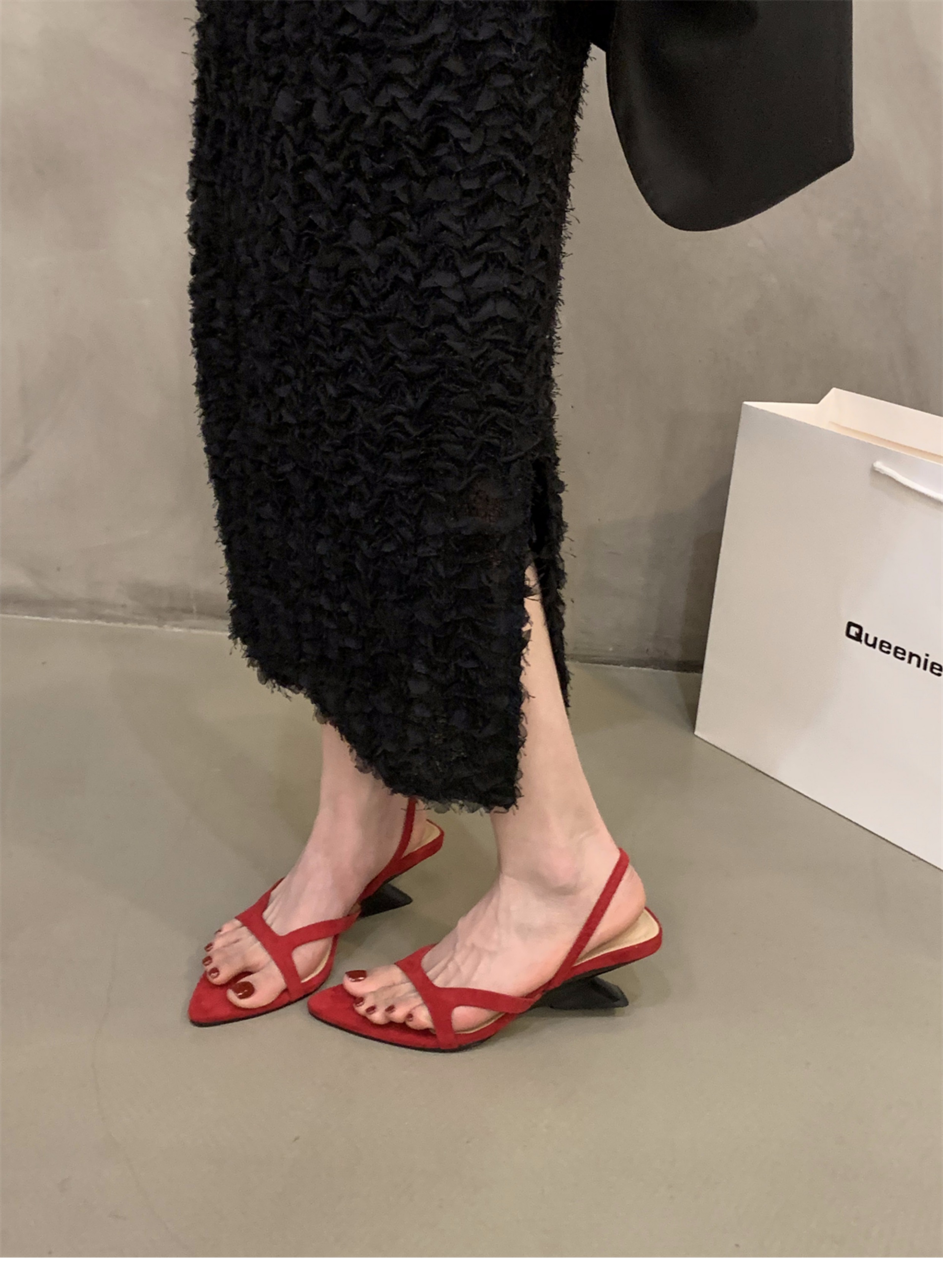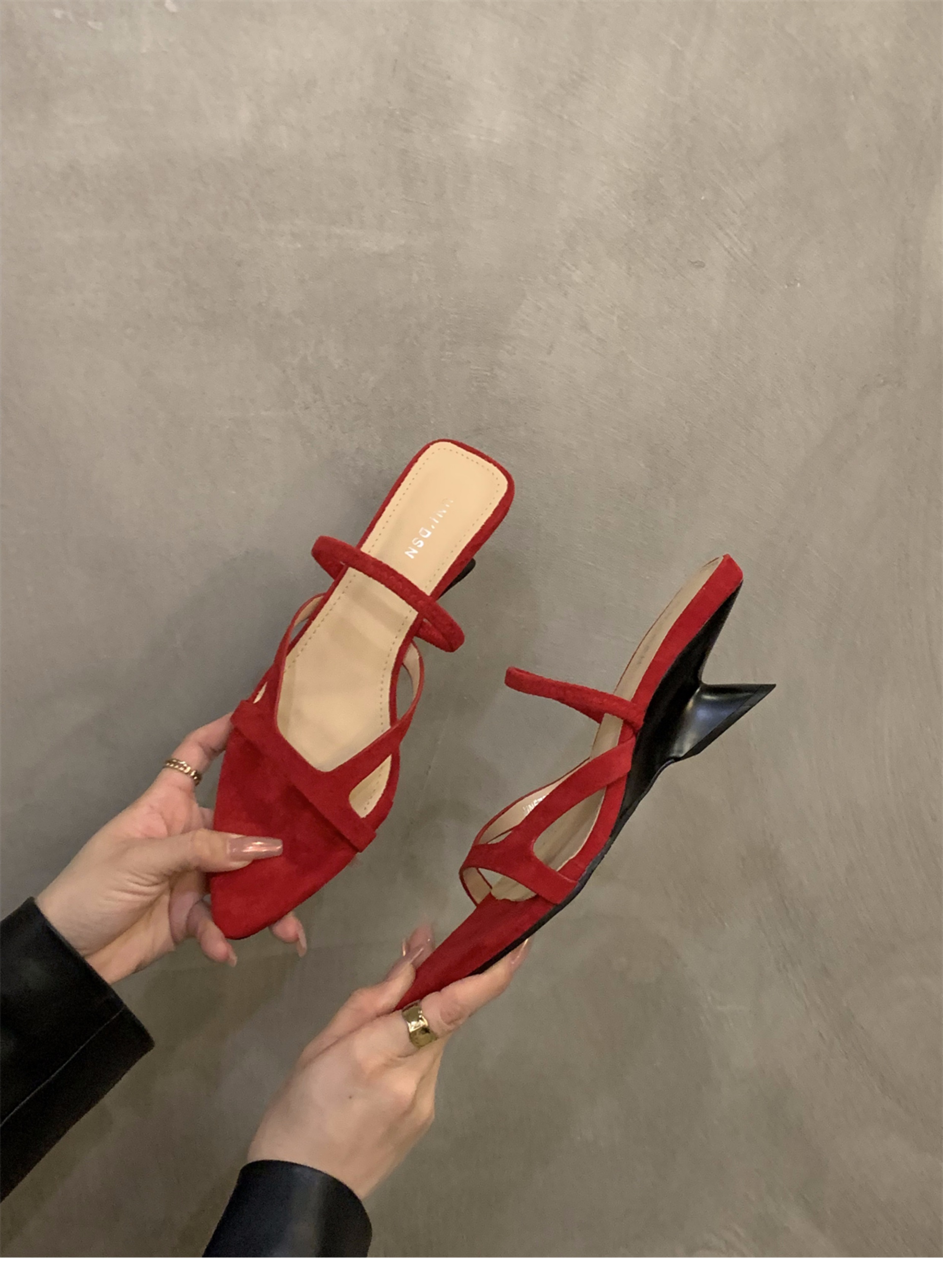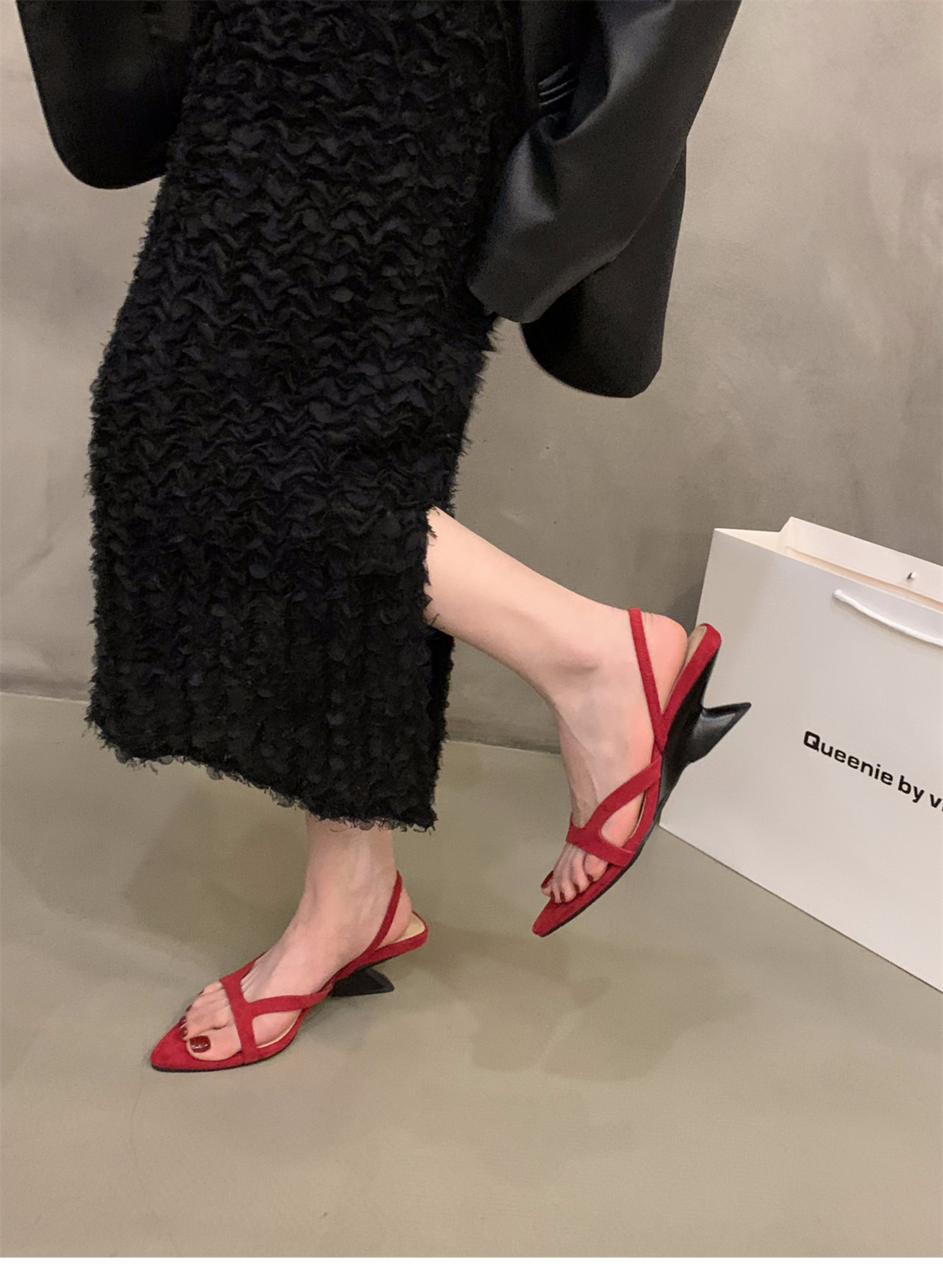 웨지 하이힐 레드 슬리퍼 페어리 슈즈 외부 착용 2025 여름 스커트 프렌치 샌들
