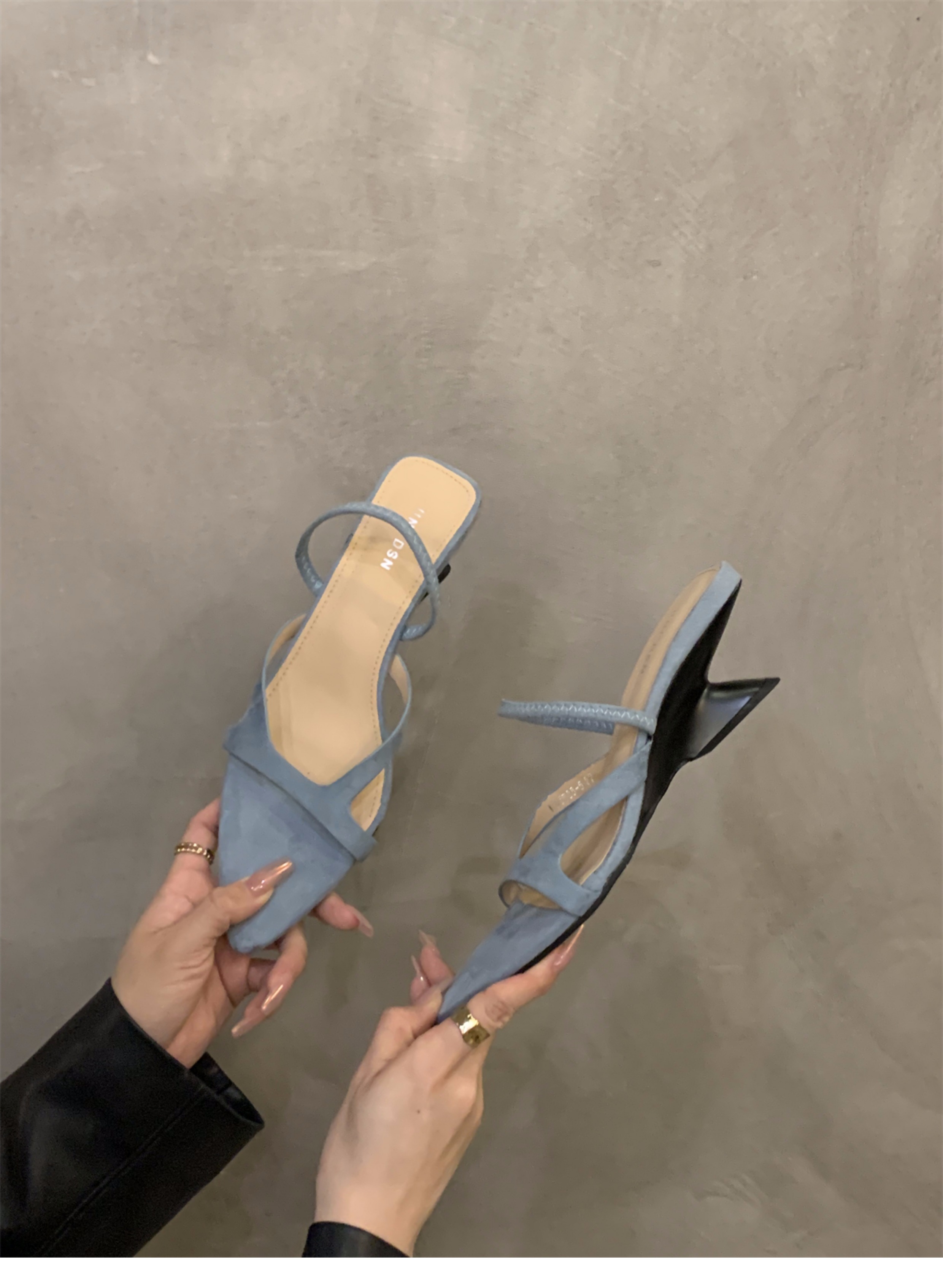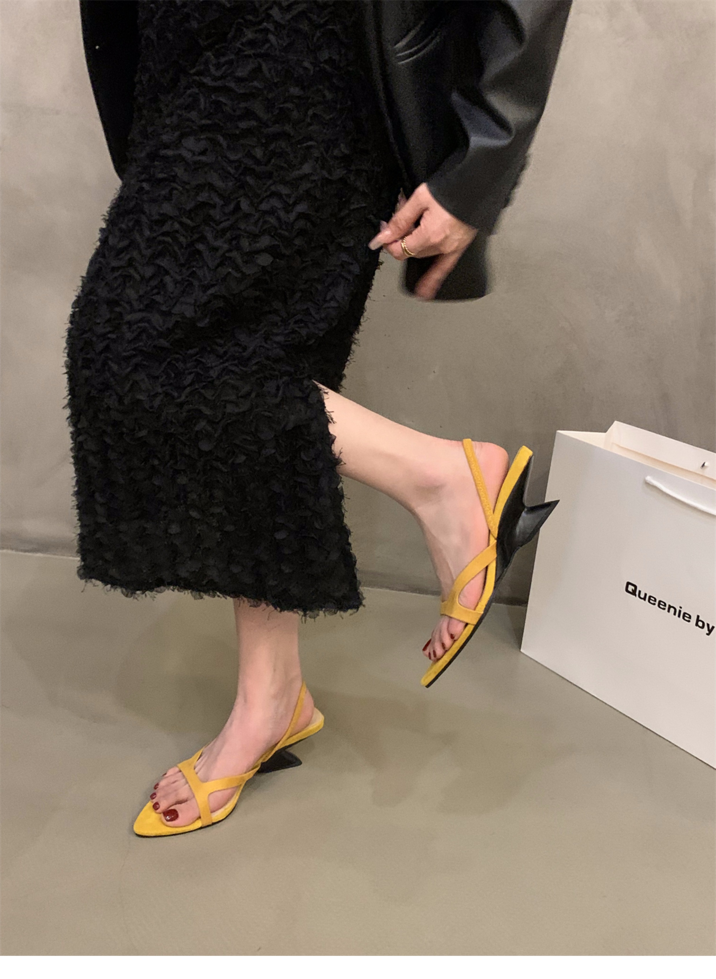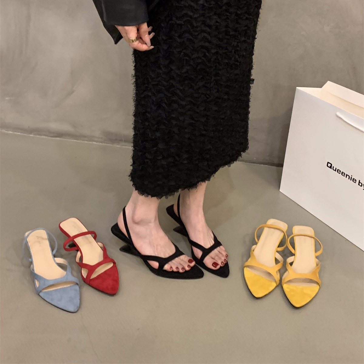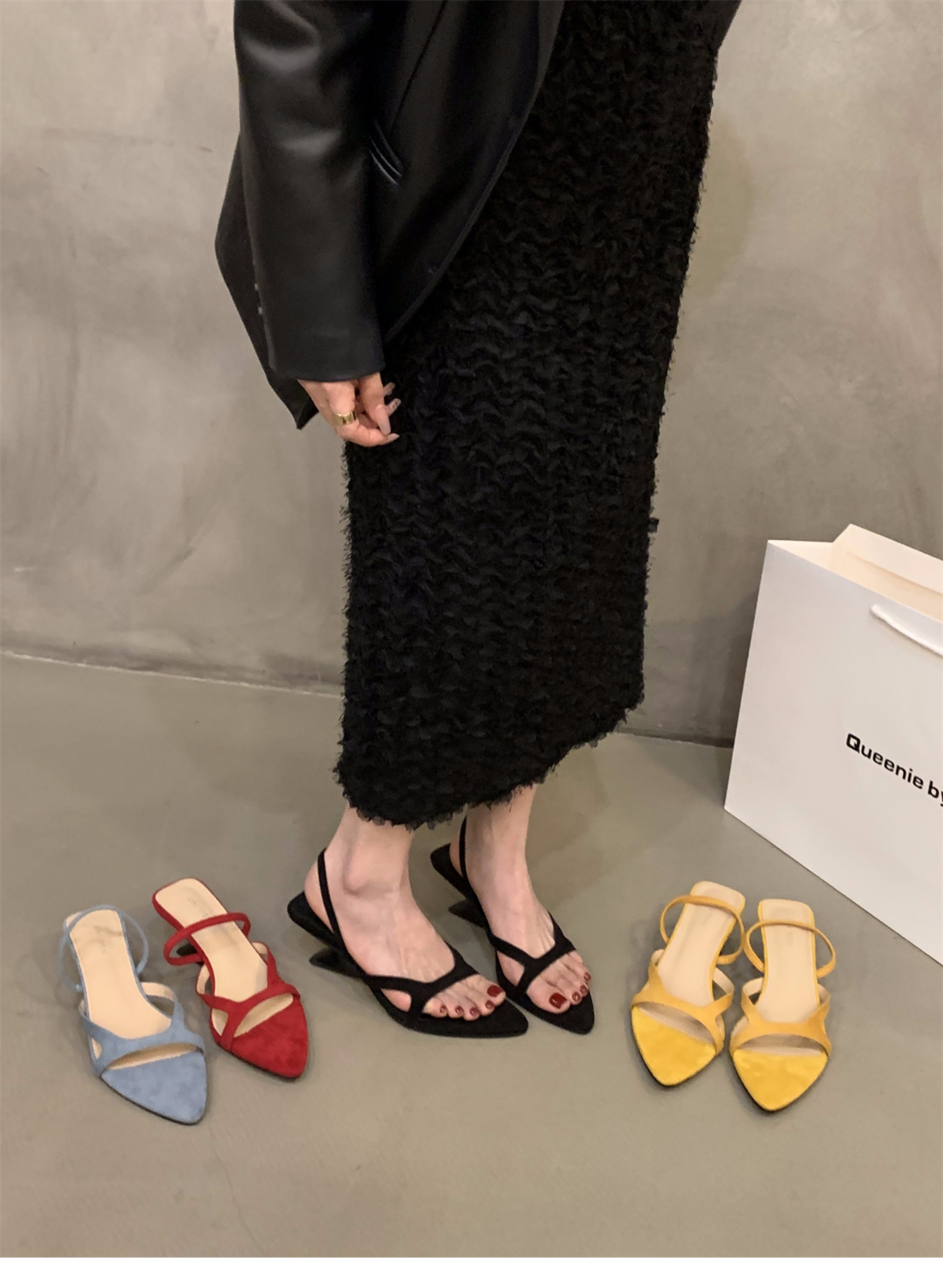 웨지 하이힐 레드 슬리퍼 페어리 슈즈 외부 착용 2025 여름 스커트 프렌치 샌들