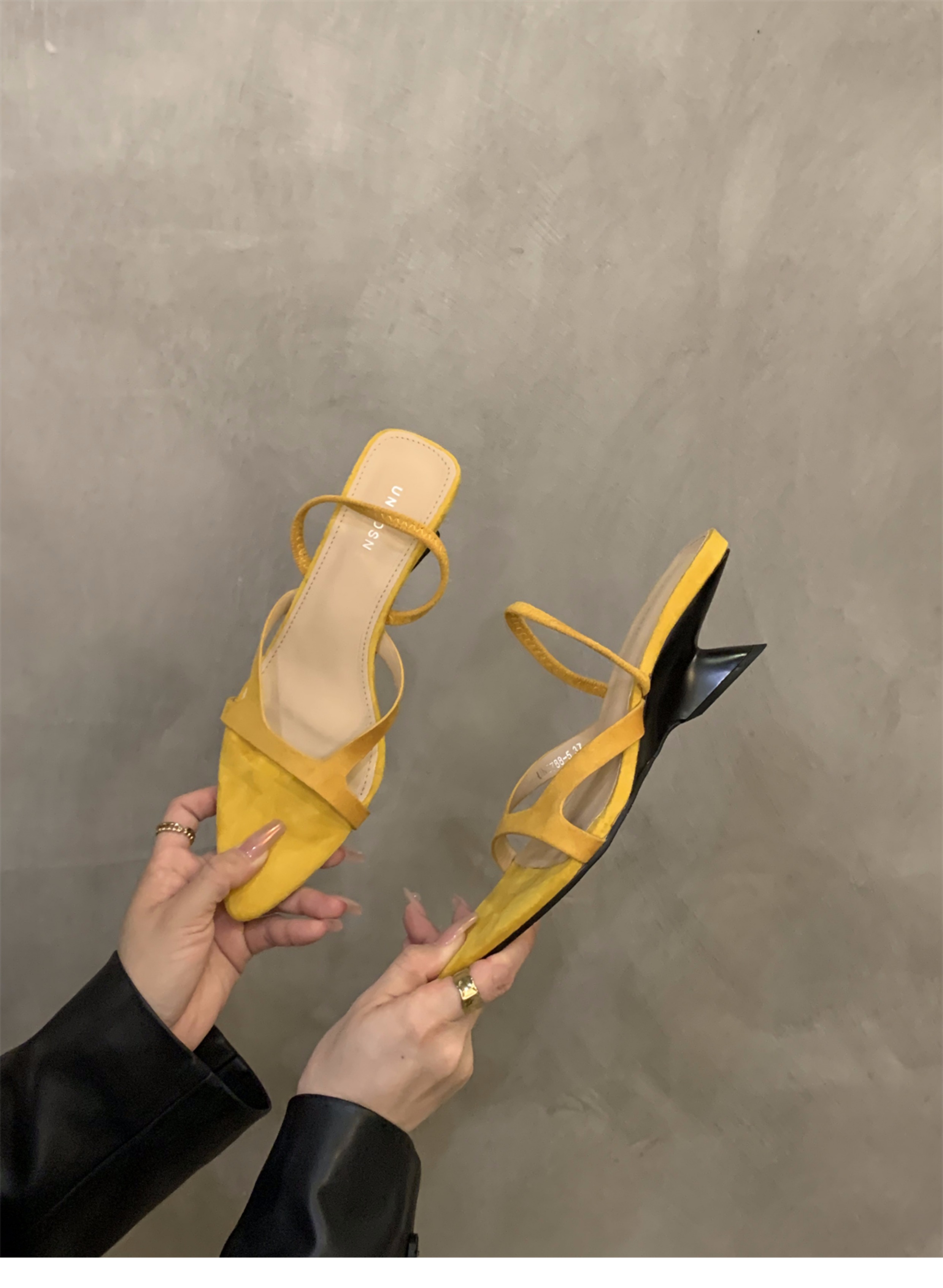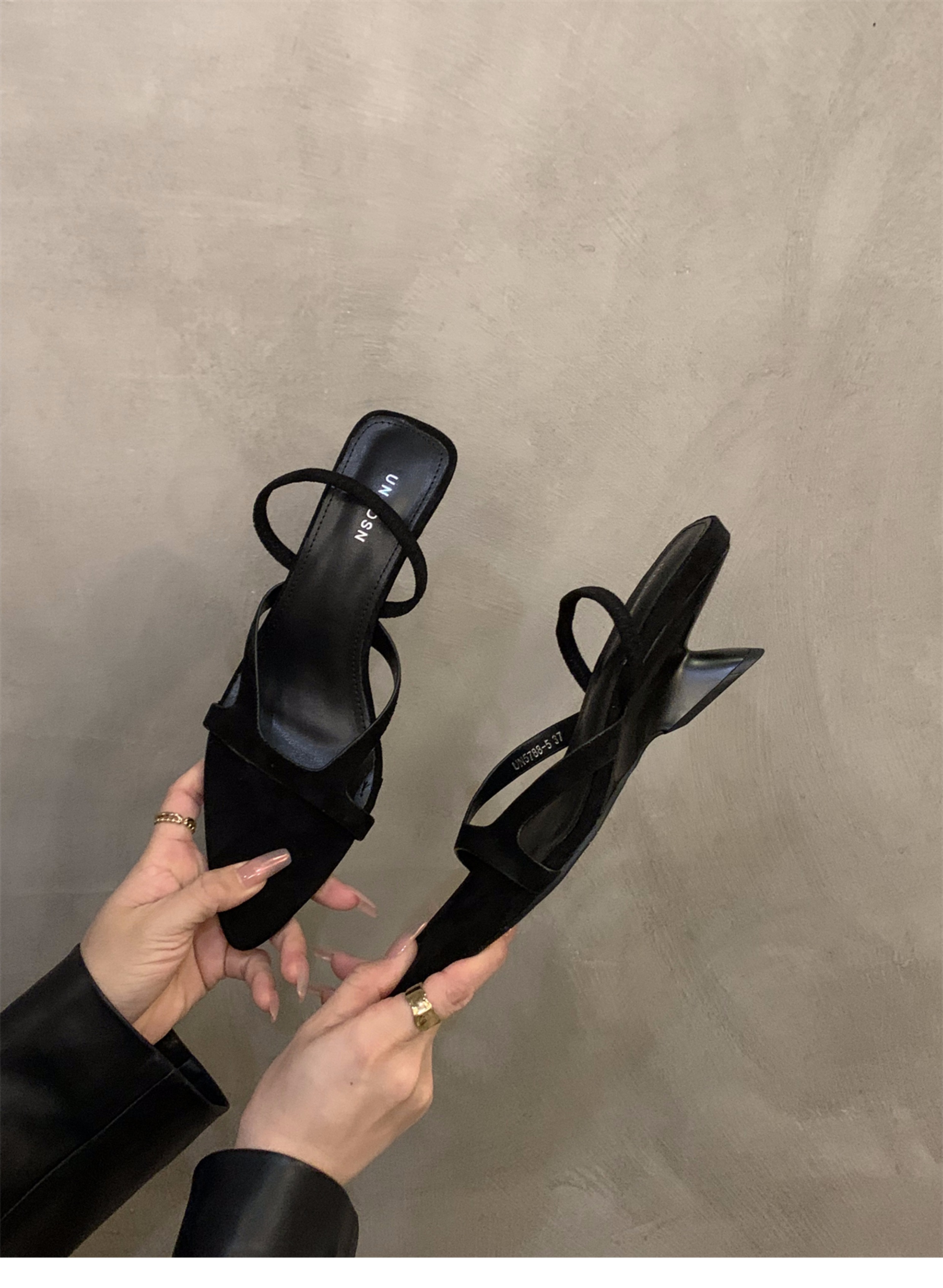 웨지 하이힐 레드 슬리퍼 페어리 슈즈 외부 착용 2025 여름 스커트 프렌치 샌들스토어 가기