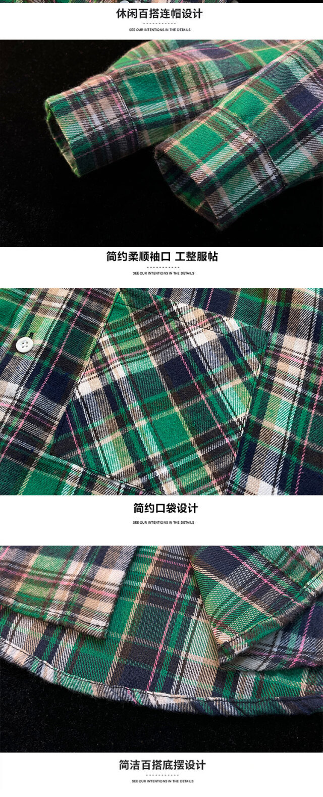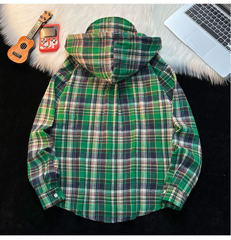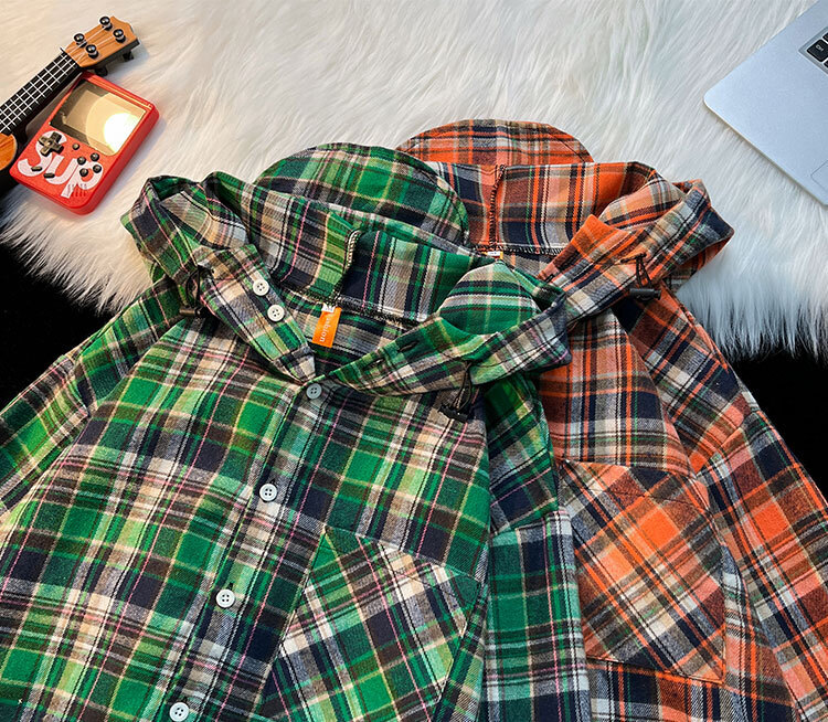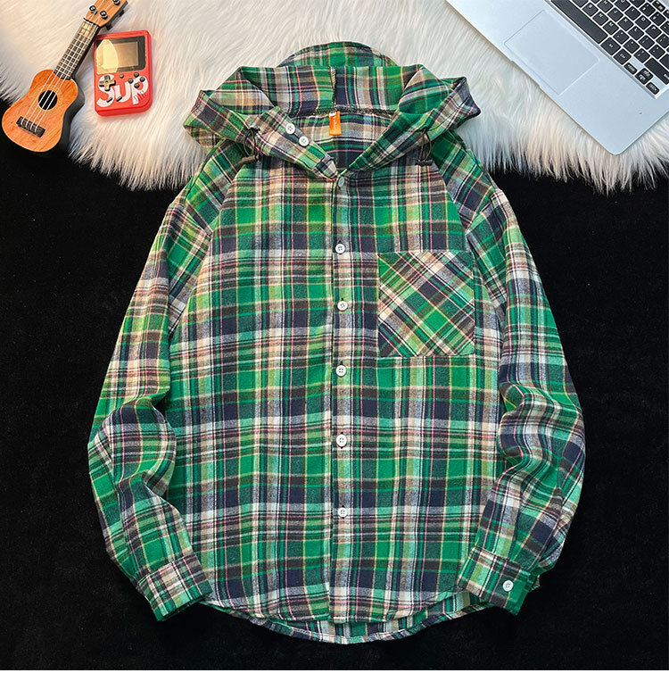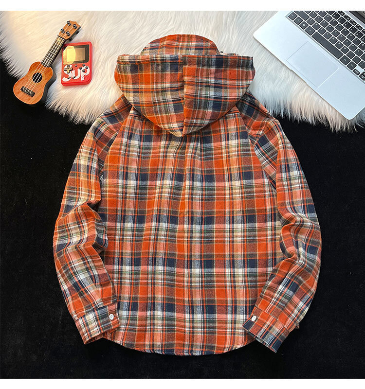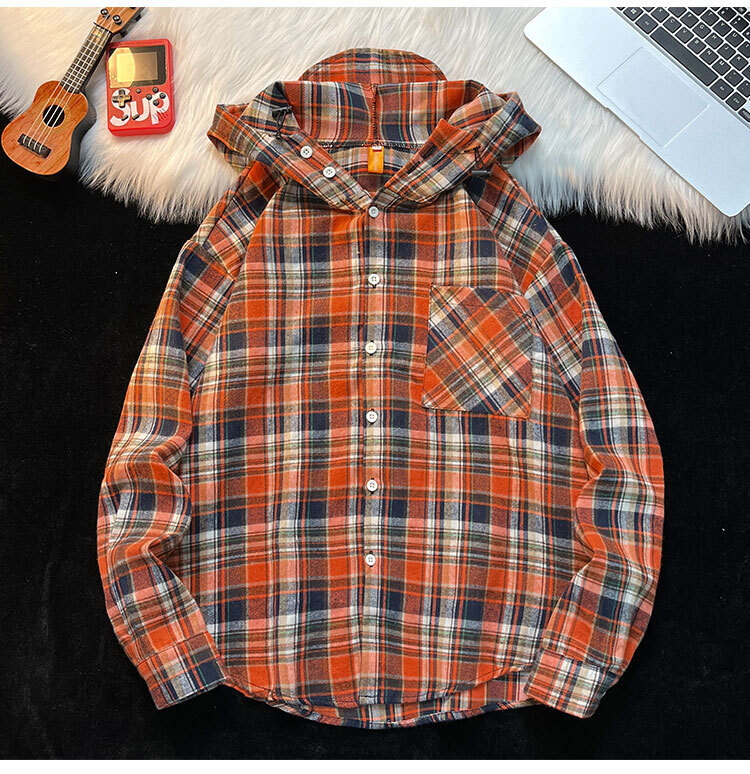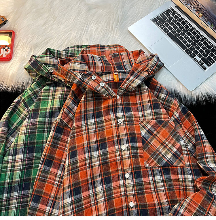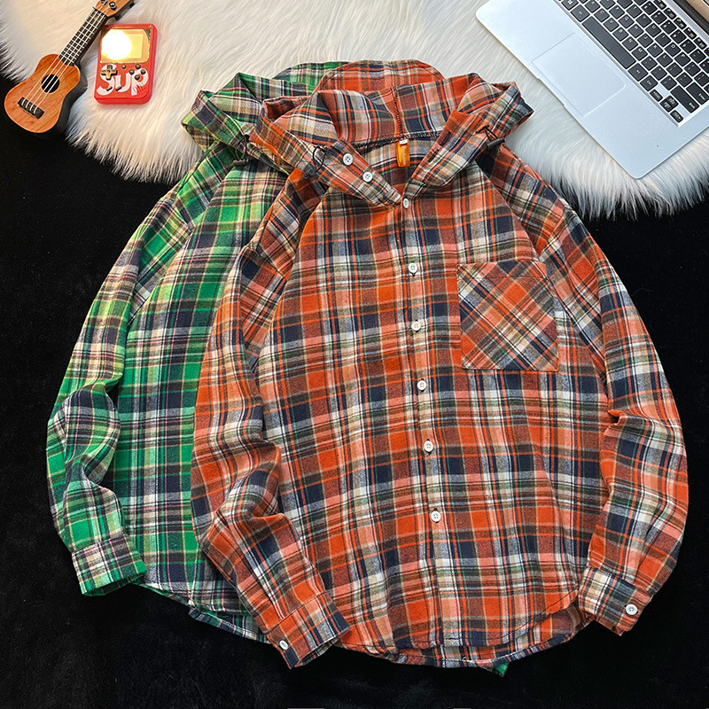 후드가 달린 격자 무늬 긴팔 셔츠 소년 간단한 카디건 푹신한 잘 생긴 커플 통기성 느슨한 레트로 긴팔 셔츠 재킷스토어 가기
