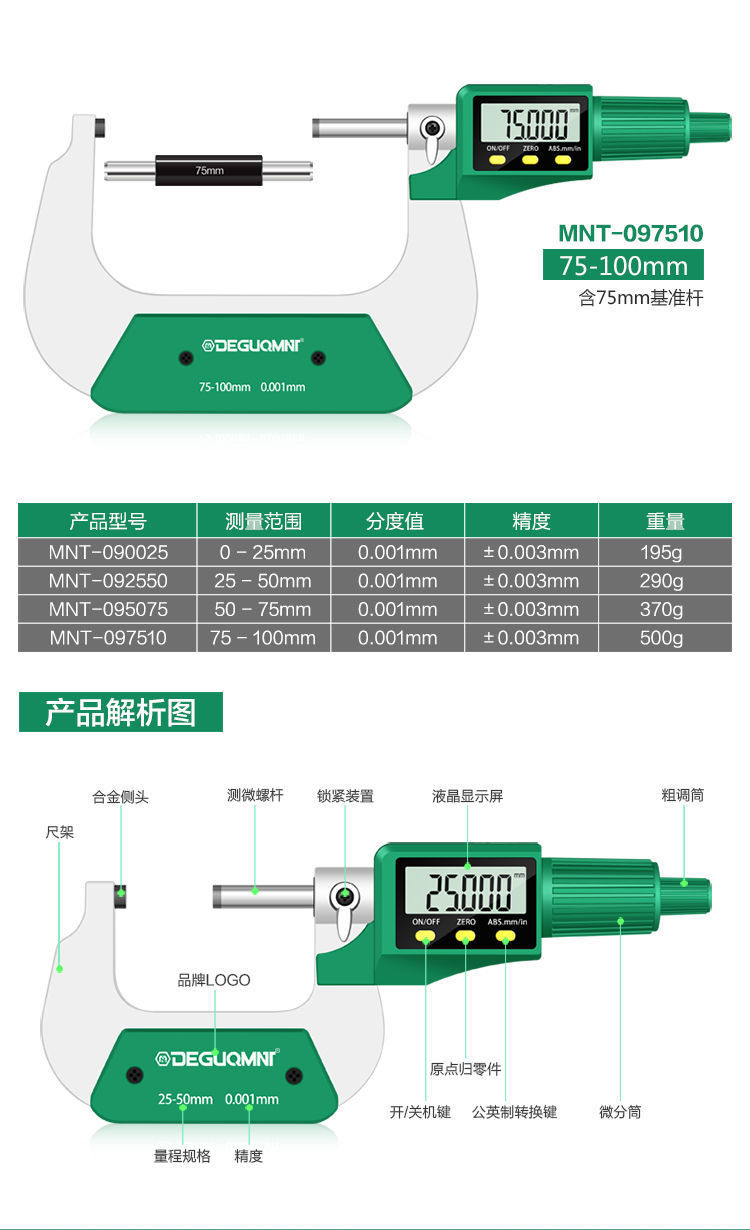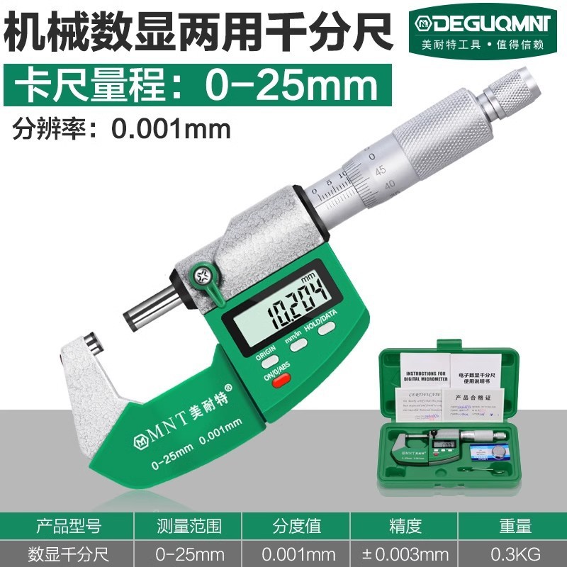• [품질검사 통과/기계식 디지털 디스플레이 겸용] 0-25mm 마이크로미터
