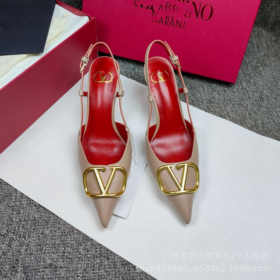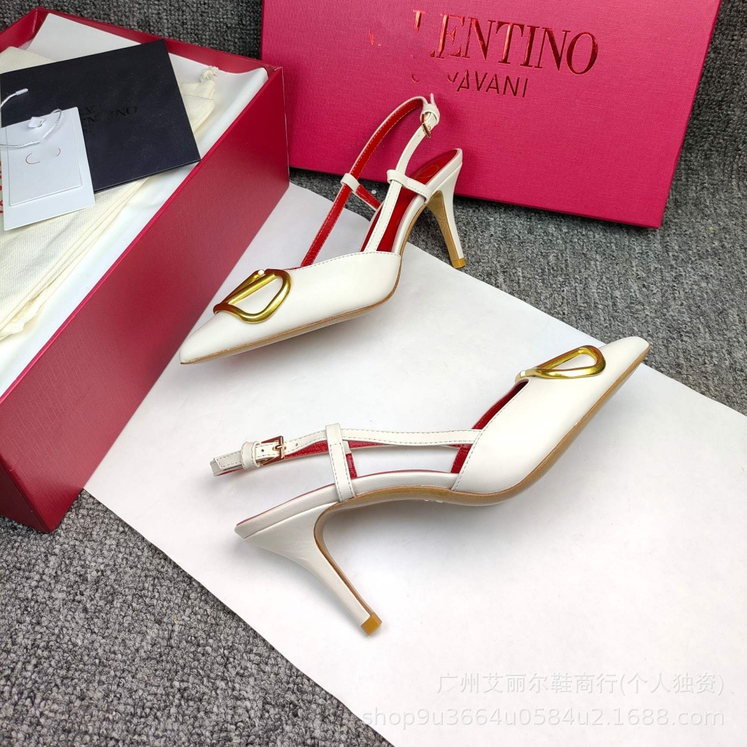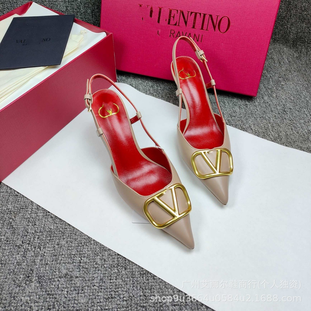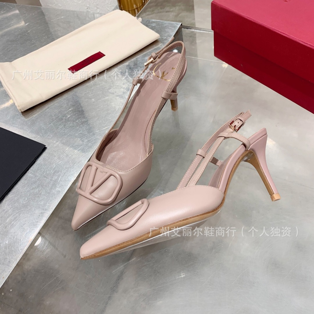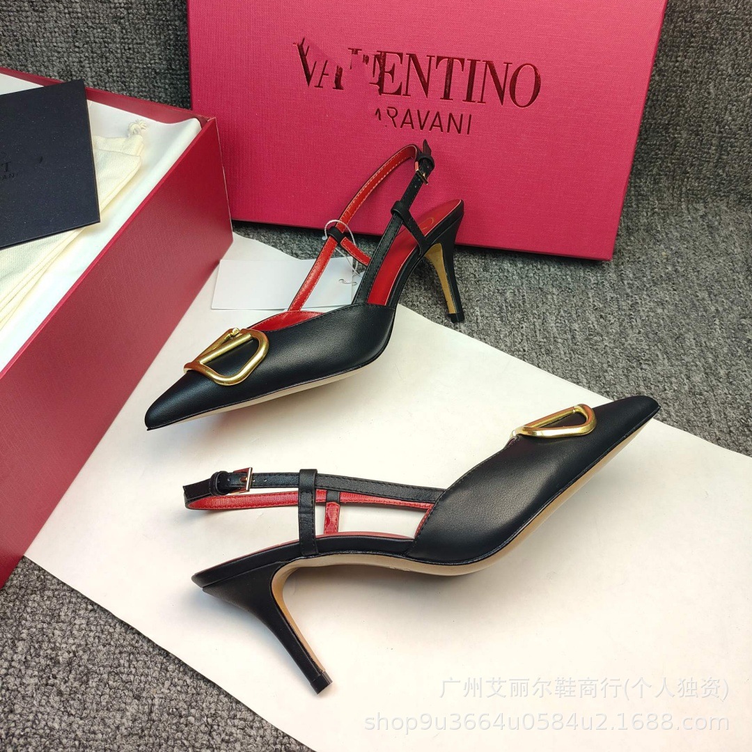 V 브랜드 하이힐 섹시 여성화, 메탈 V 버클 포인티드 토 싱글 슈즈, 얕은 입구의 달콤한 스틸레토 샌들, 여성 OL 스타일스토어 가기
