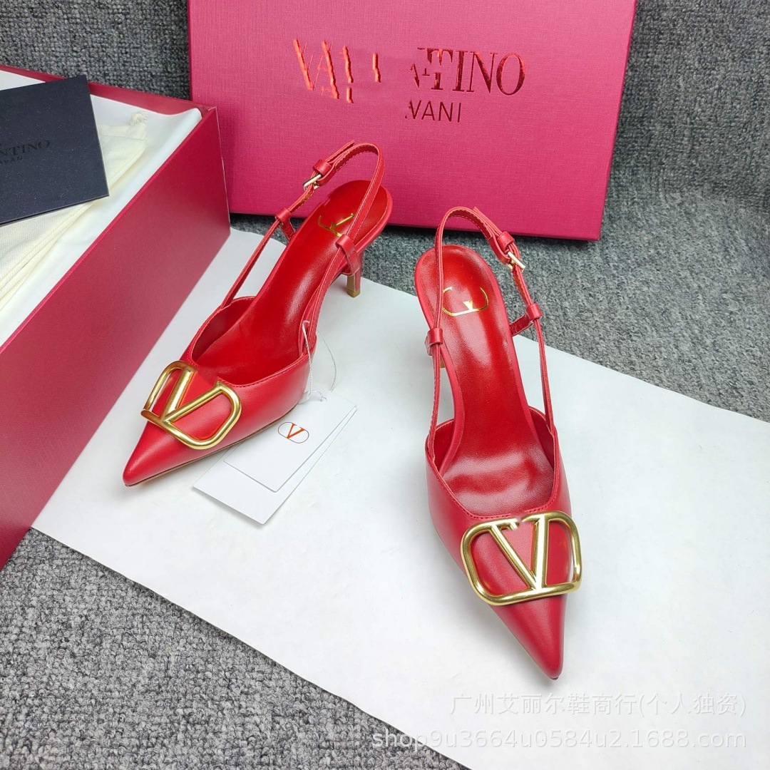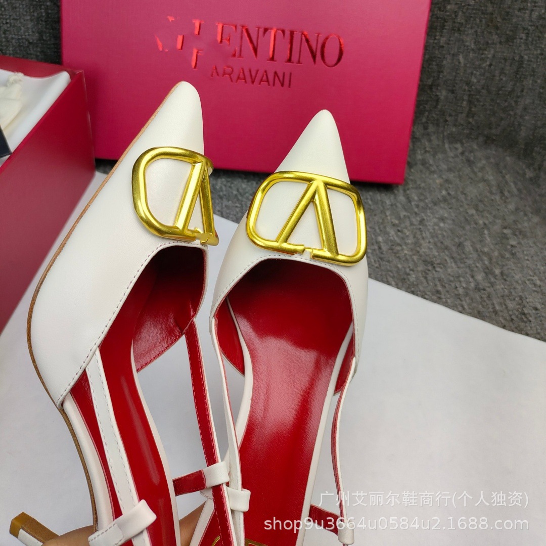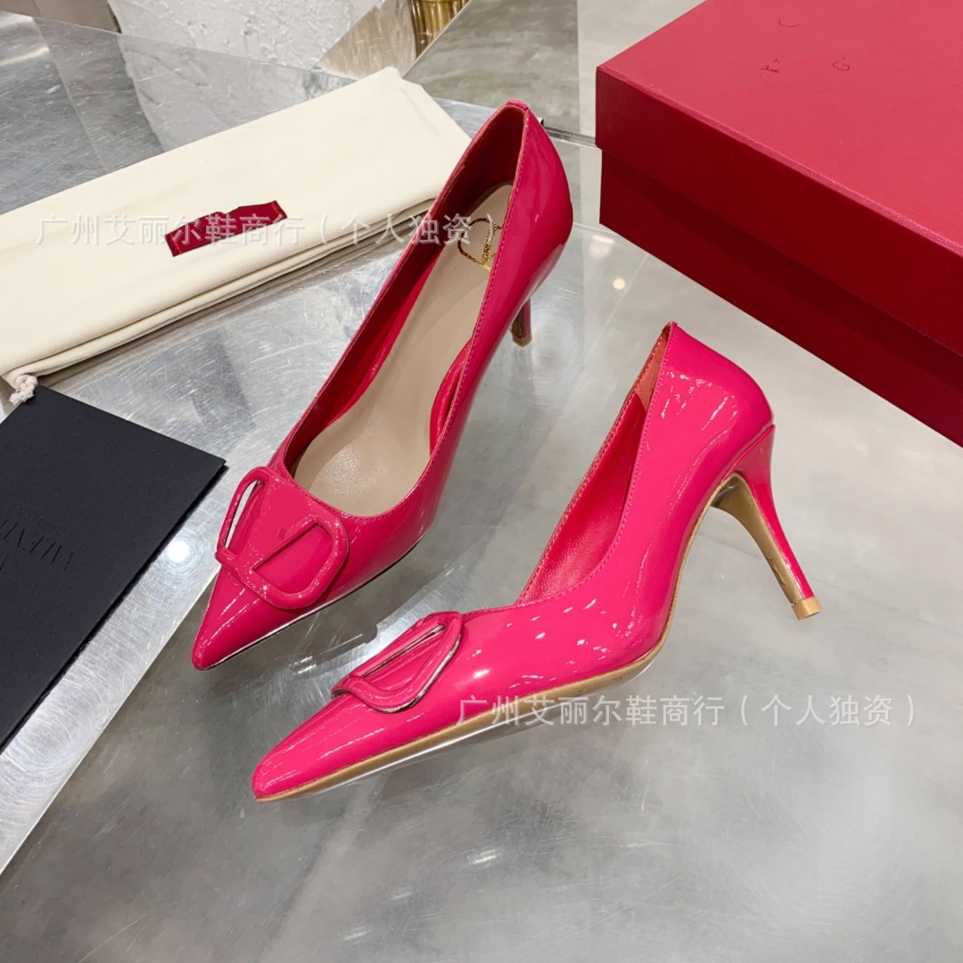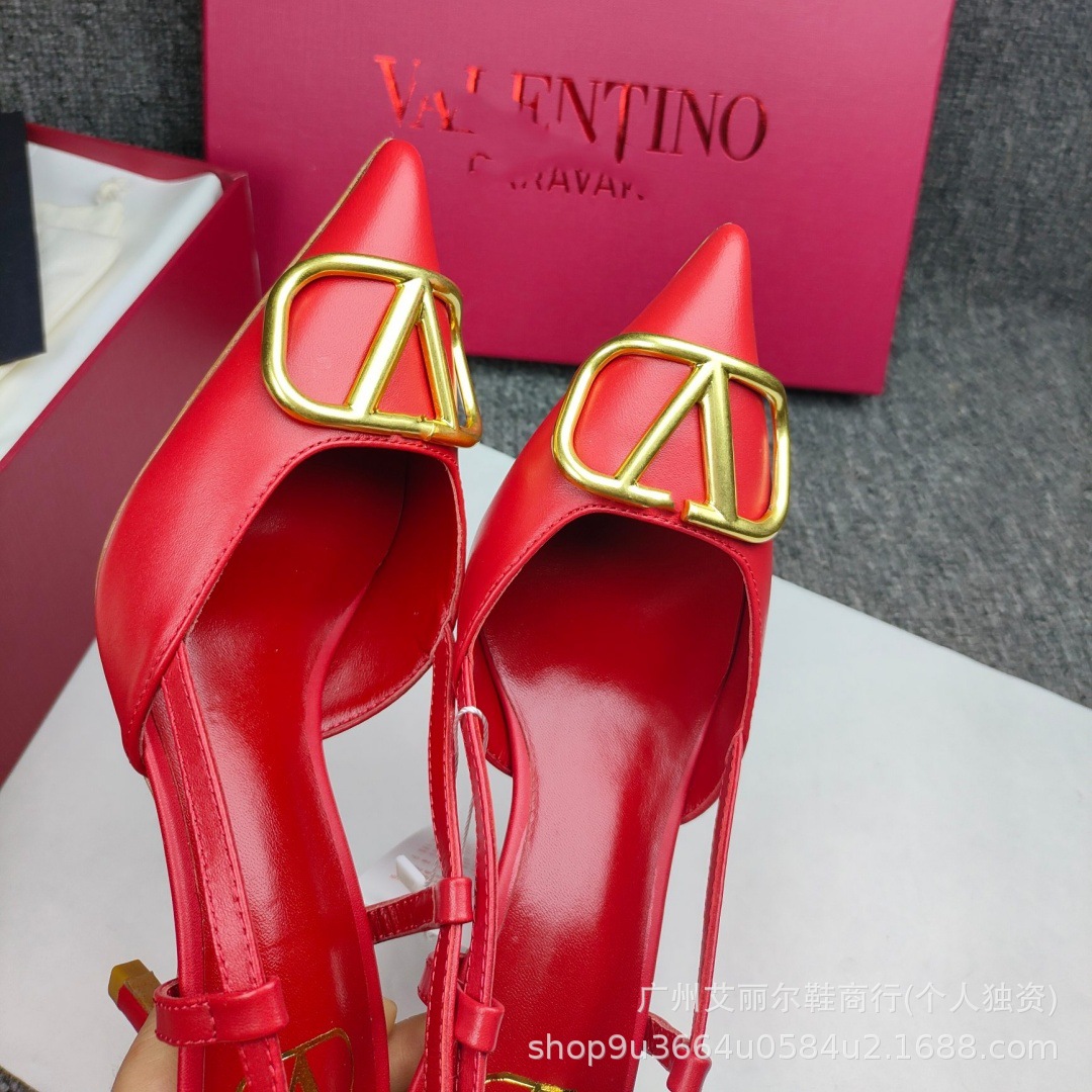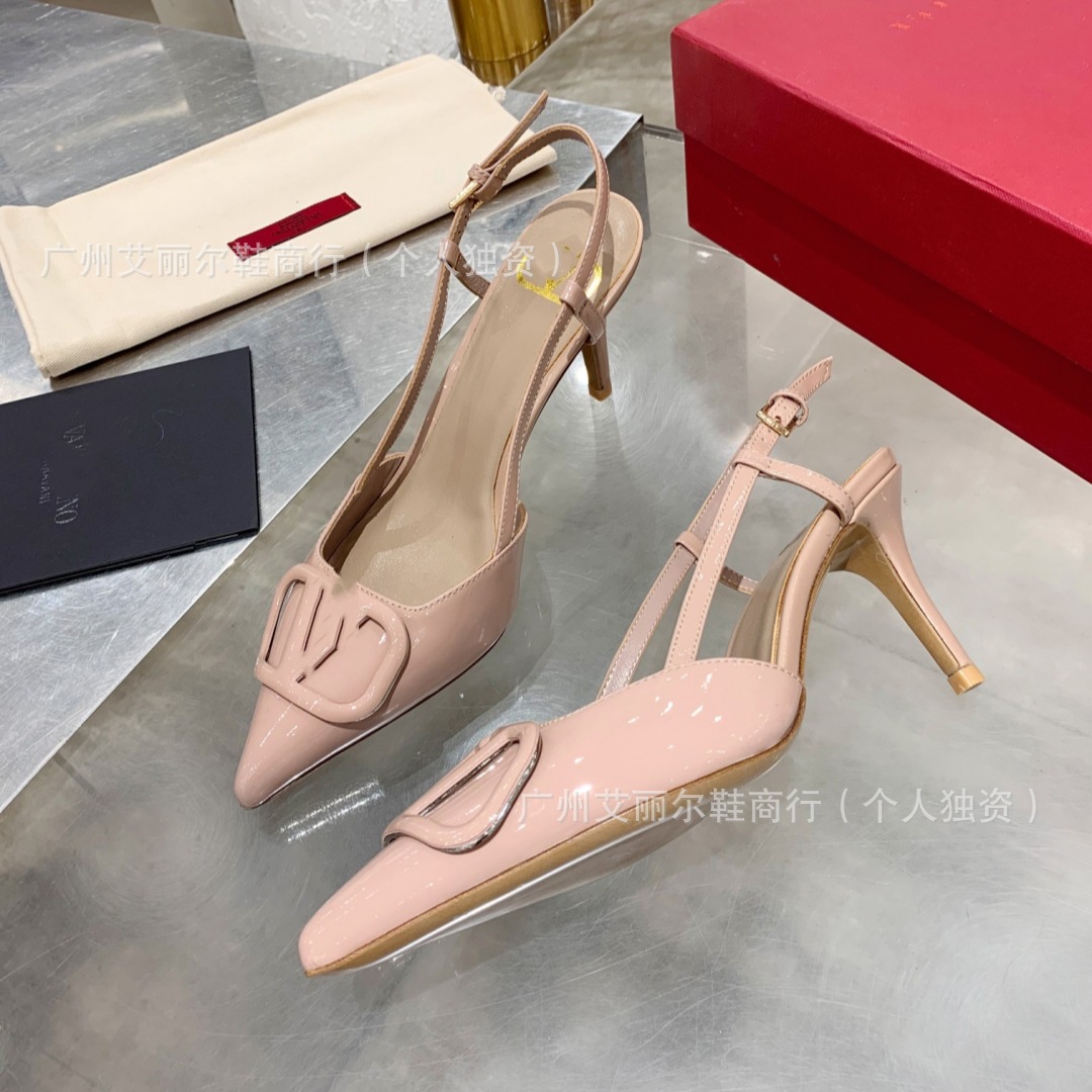 V 브랜드 하이힐 섹시 여성화, 메탈 V 버클 포인티드 토 싱글 슈즈, 얕은 입구의 달콤한 스틸레토 샌들, 여성 OL 스타일스토어 가기
