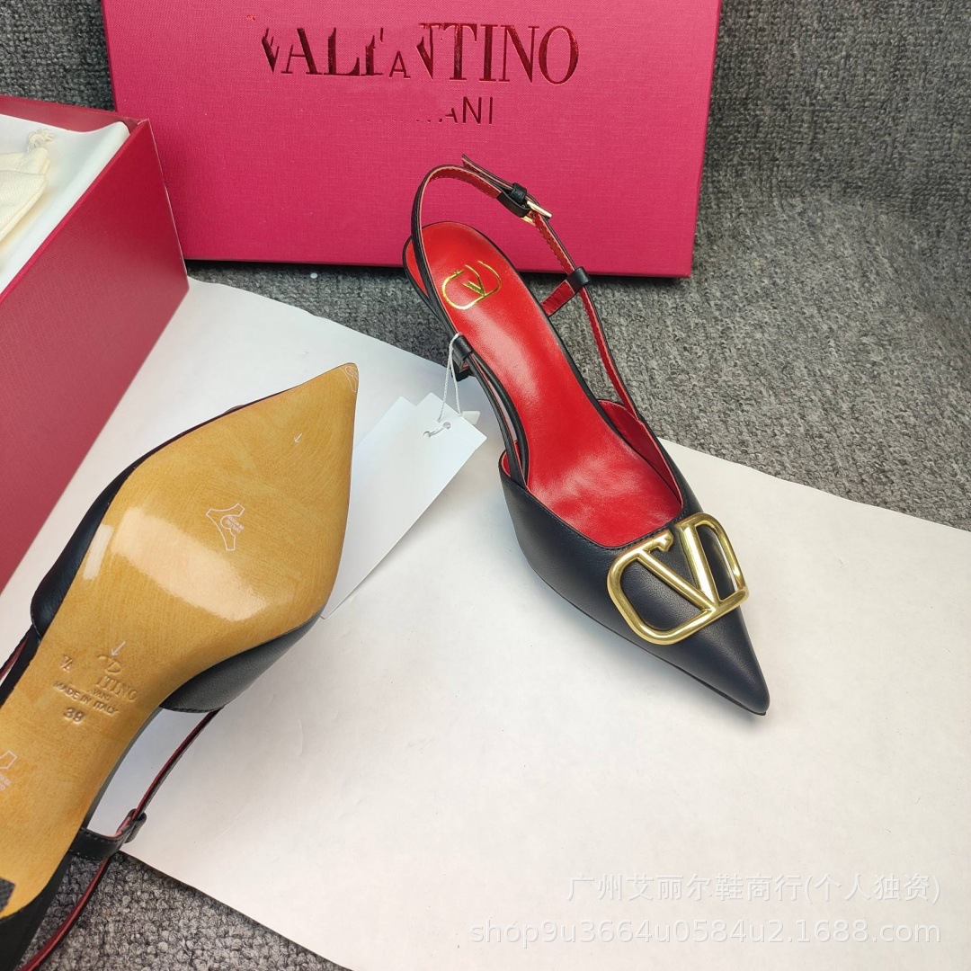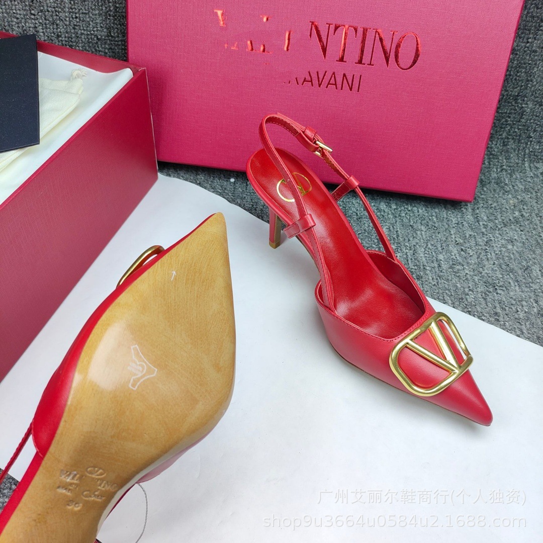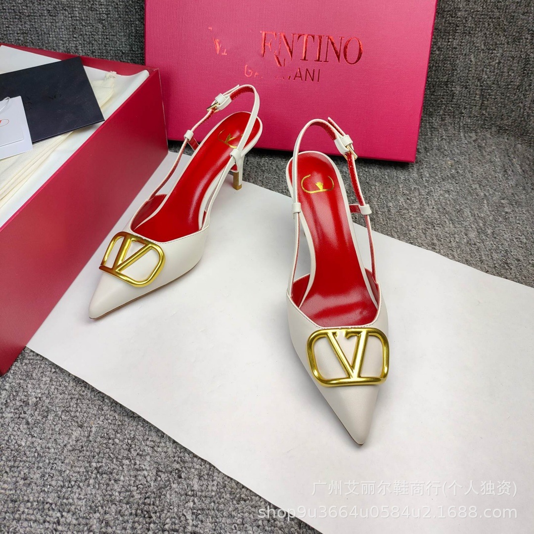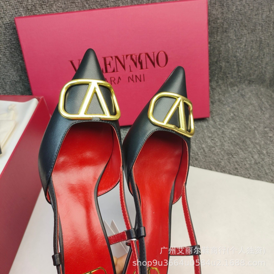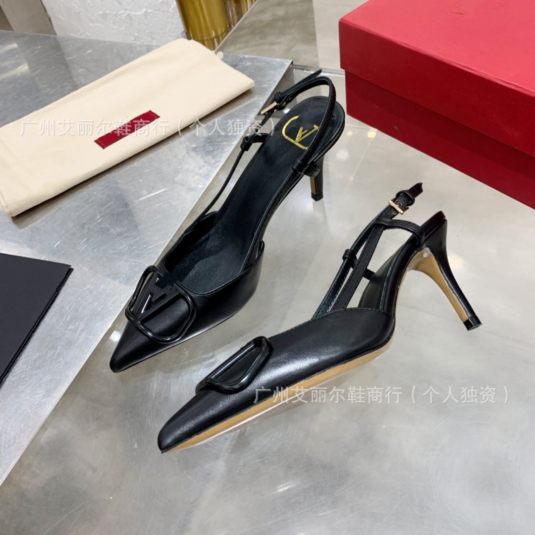 V 브랜드 하이힐 섹시 여성화, 메탈 V 버클 포인티드 토 싱글 슈즈, 얕은 입구의 달콤한 스틸레토 샌들, 여성 OL 스타일스토어 가기