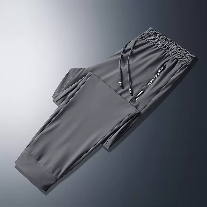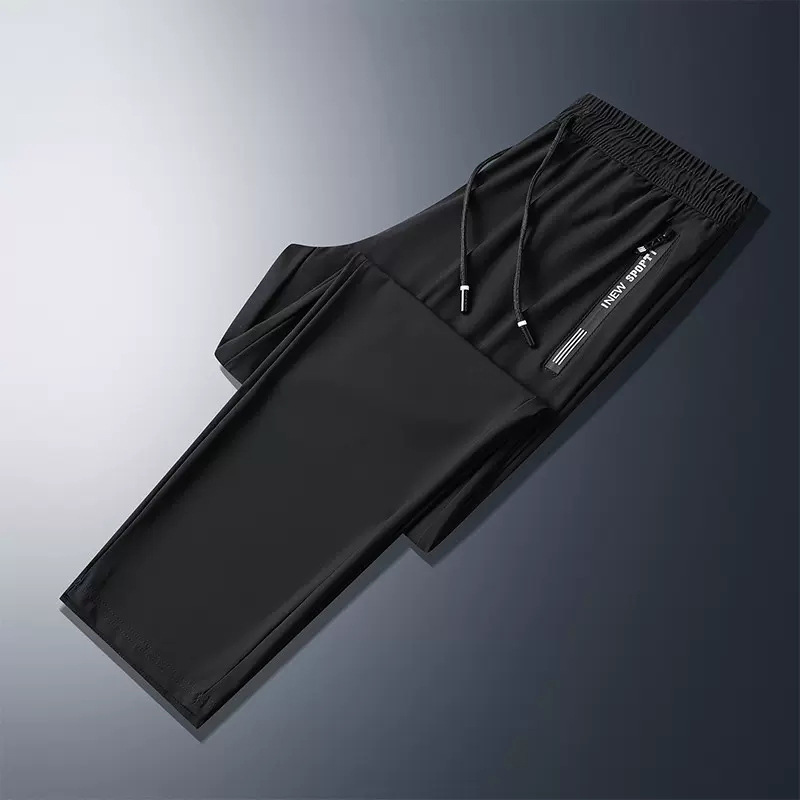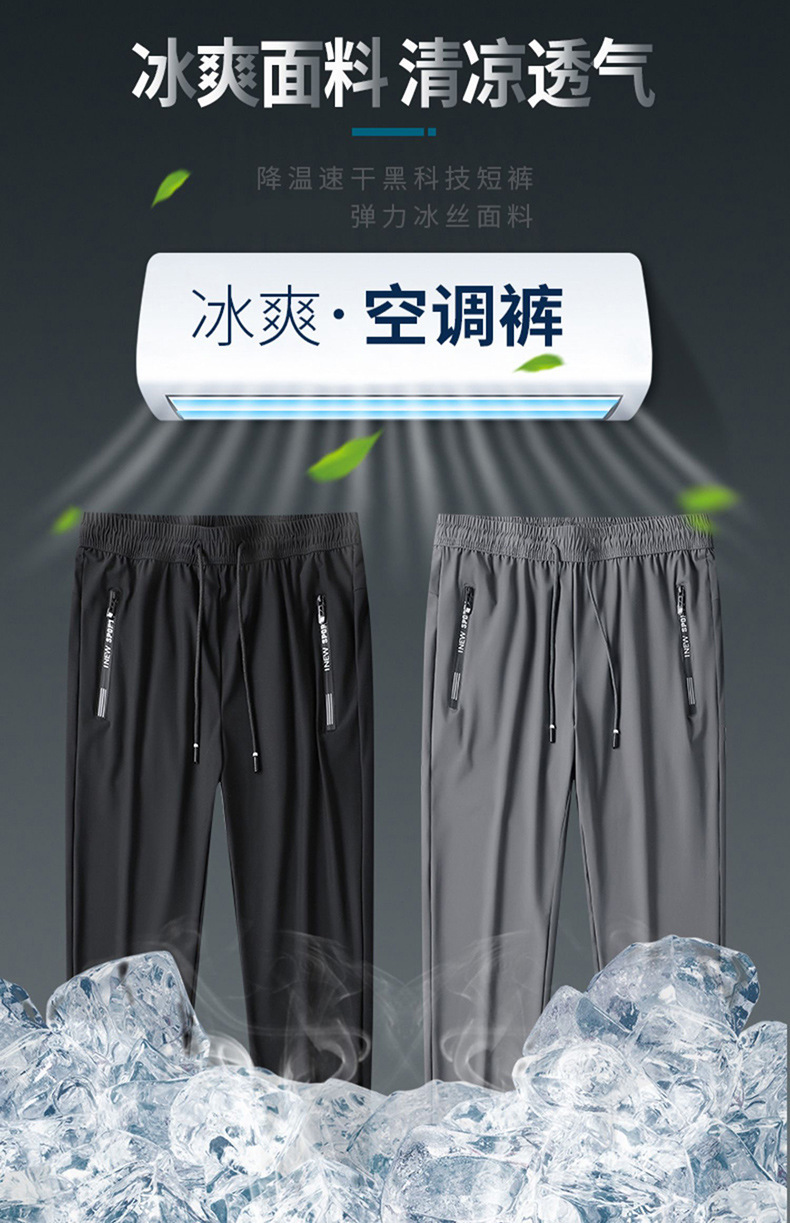 소스 공장 아이스 실크 바지 남자의 봄과 여름 얇은 빠른 건조 통기성 스포츠 캐주얼 바지 느슨한 발목 바지