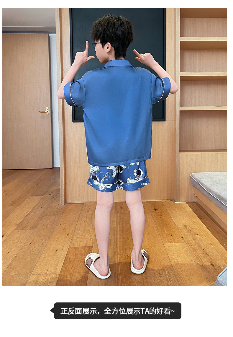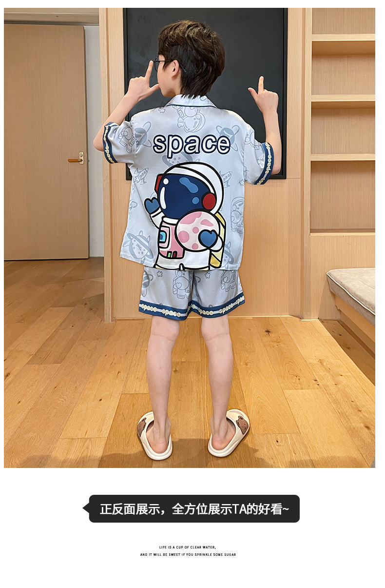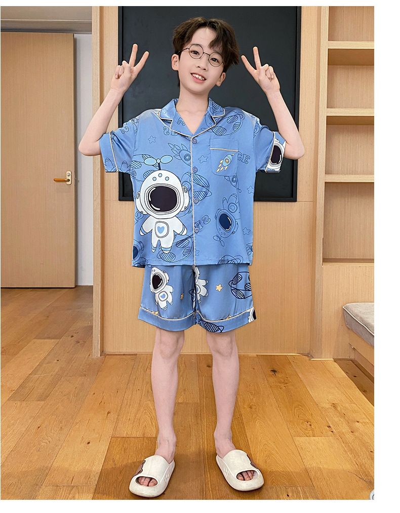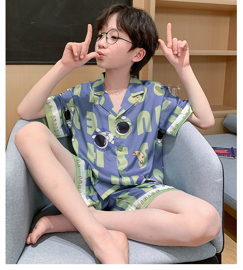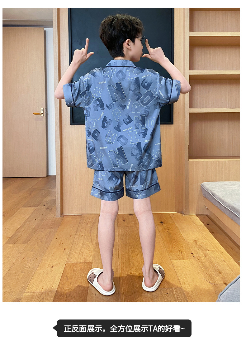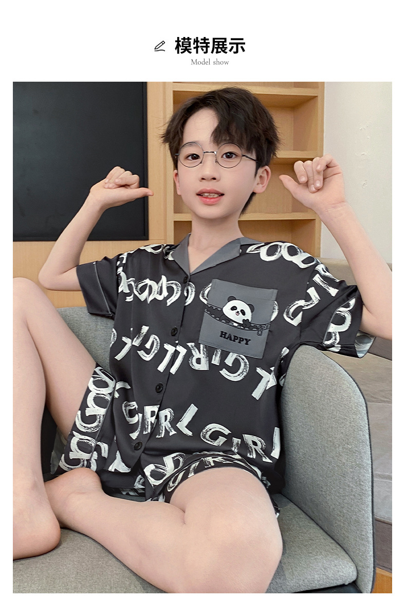 남학생 잠옷 여름 아이스 실크 얇은 짧은 소매 어린이 소년 2025 새로운 여름 십대 큰 아이들의 집 옷스토어 가기