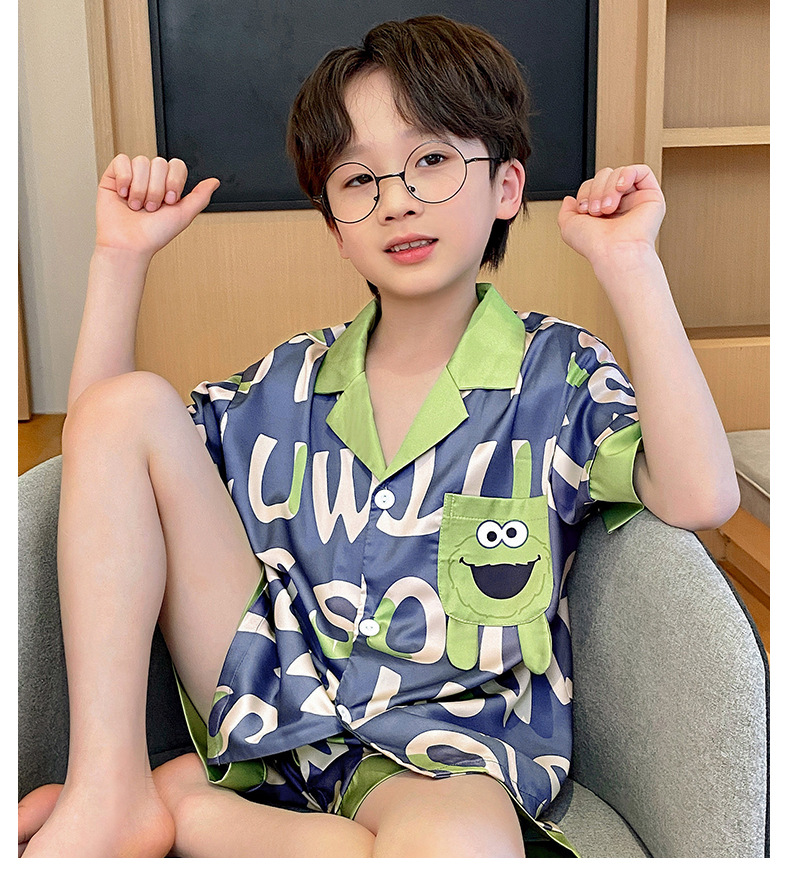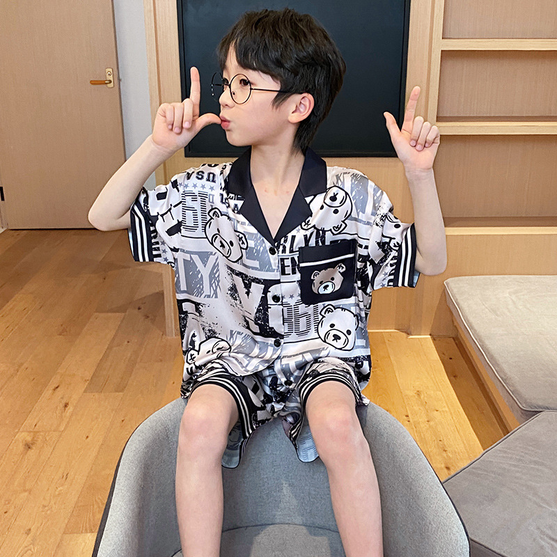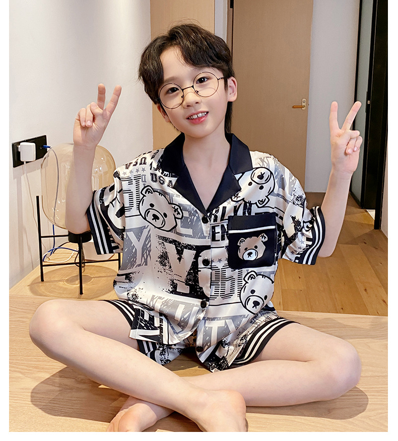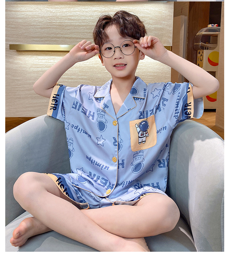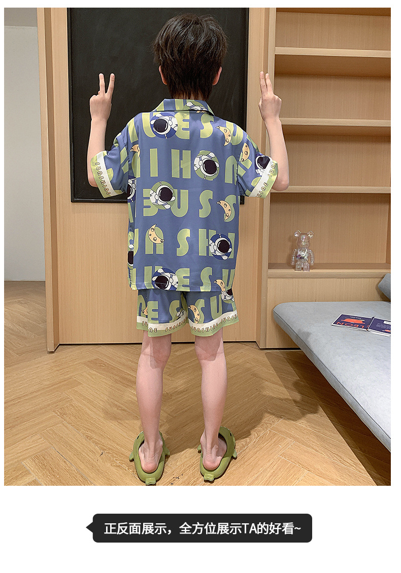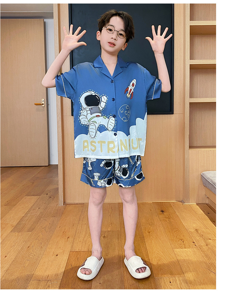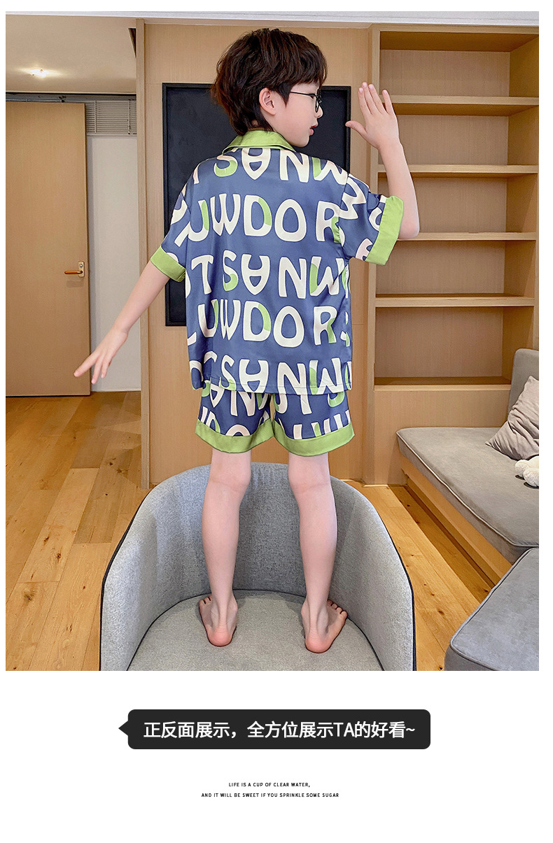 남학생 잠옷 여름 아이스 실크 얇은 짧은 소매 어린이 소년 2025 새로운 여름 십대 큰 아이들의 집 옷스토어 가기