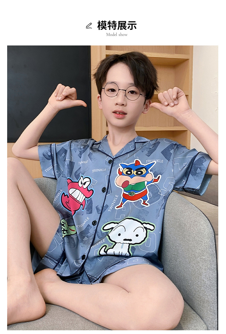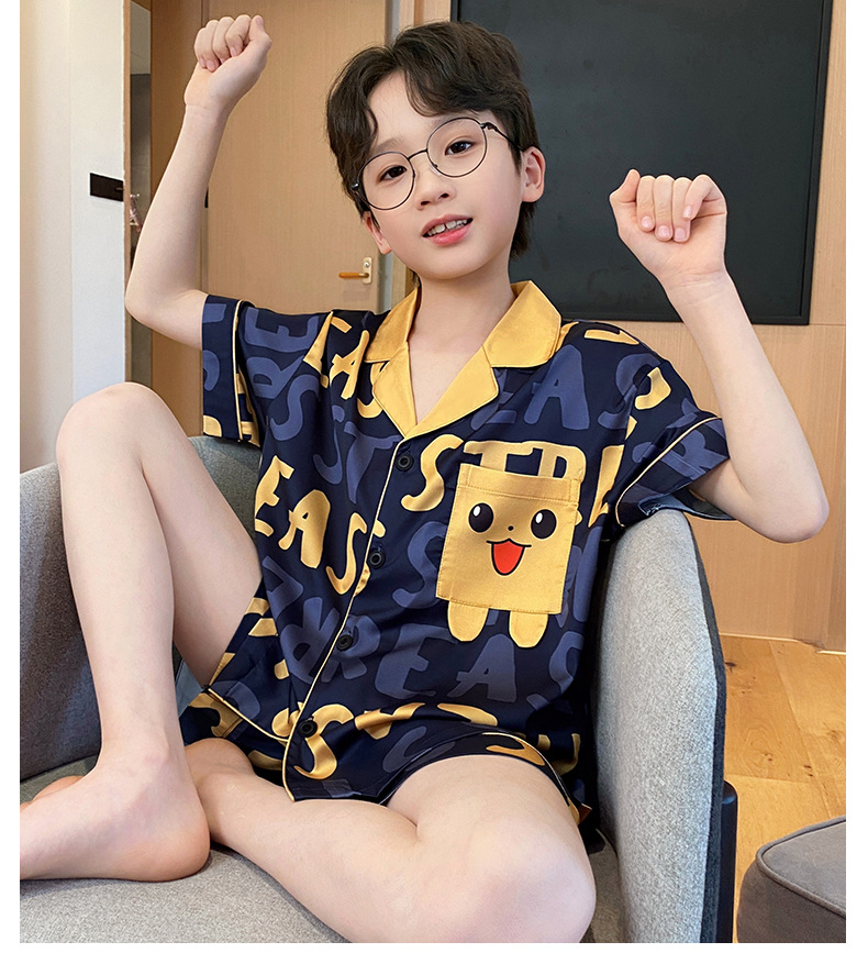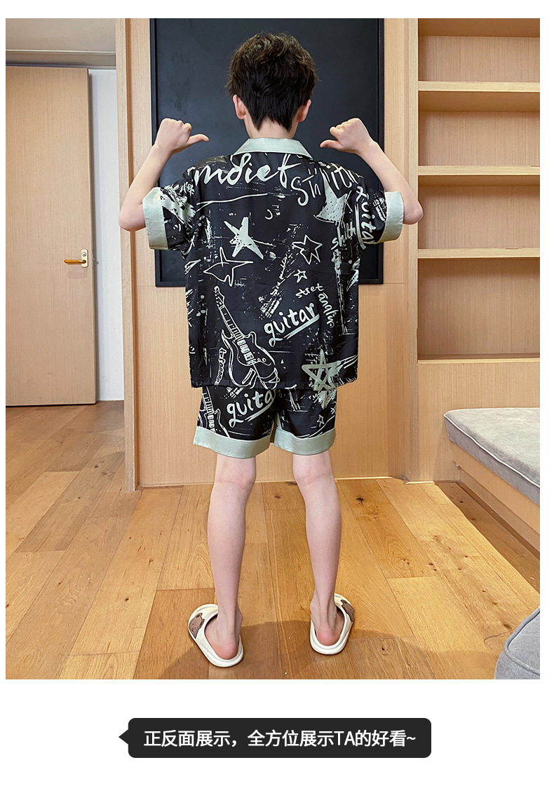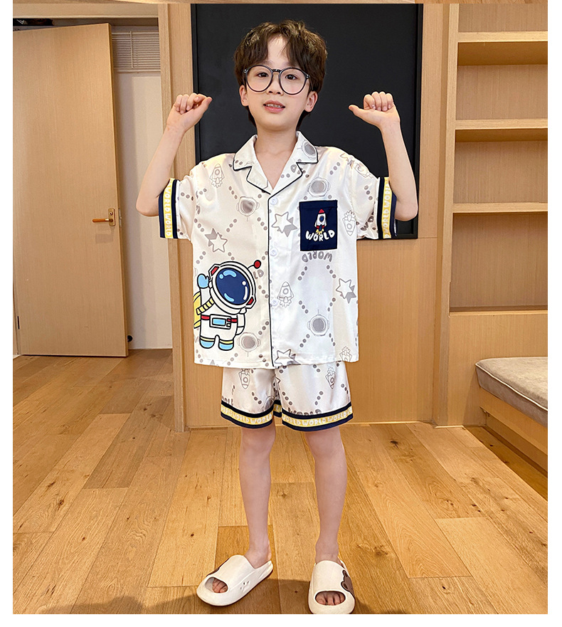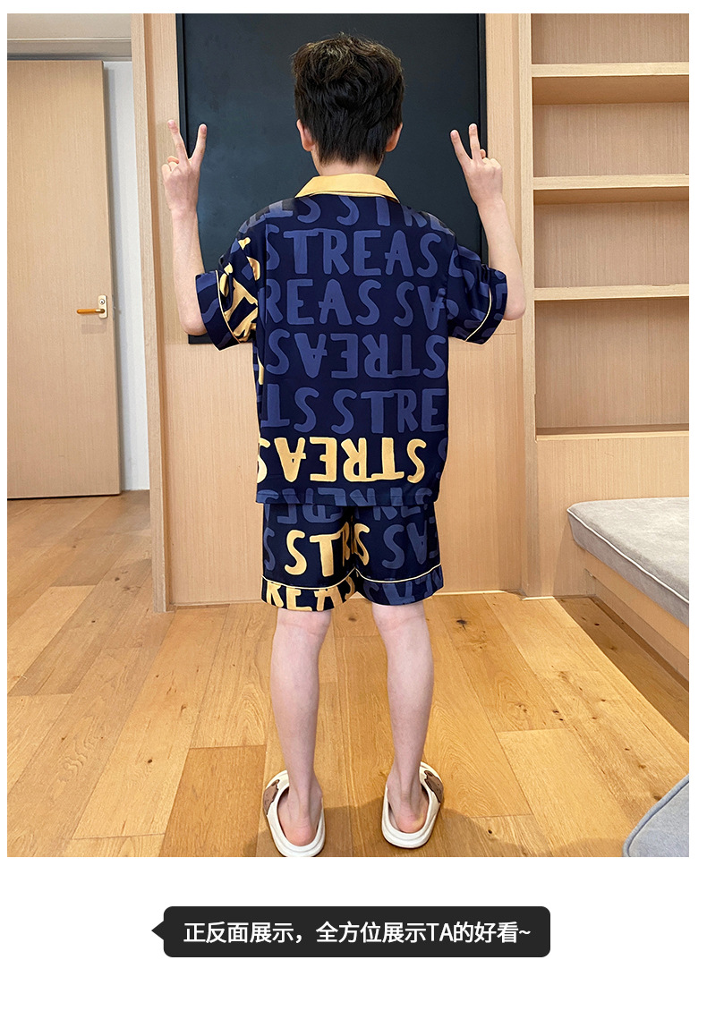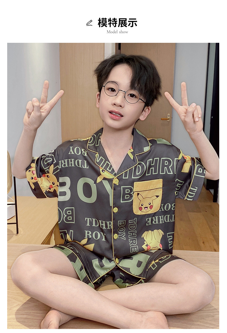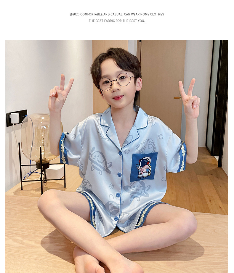 남학생 잠옷 여름 아이스 실크 얇은 짧은 소매 어린이 소년 2025 새로운 여름 십대 큰 아이들의 집 옷스토어 가기
