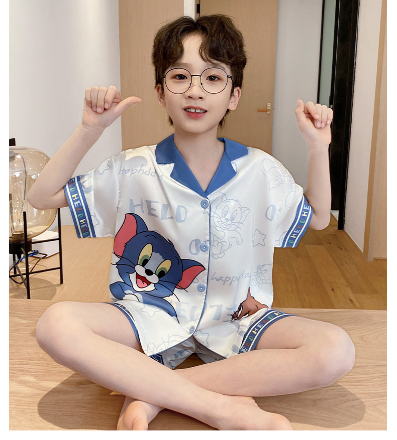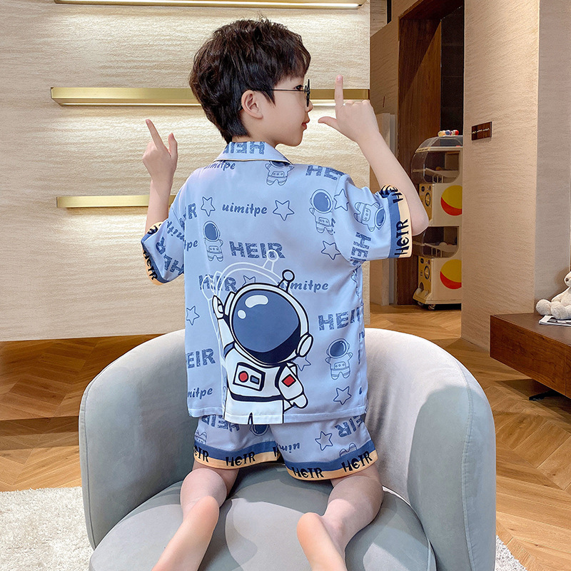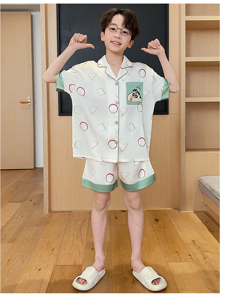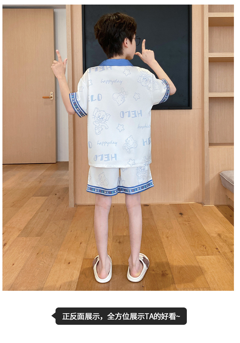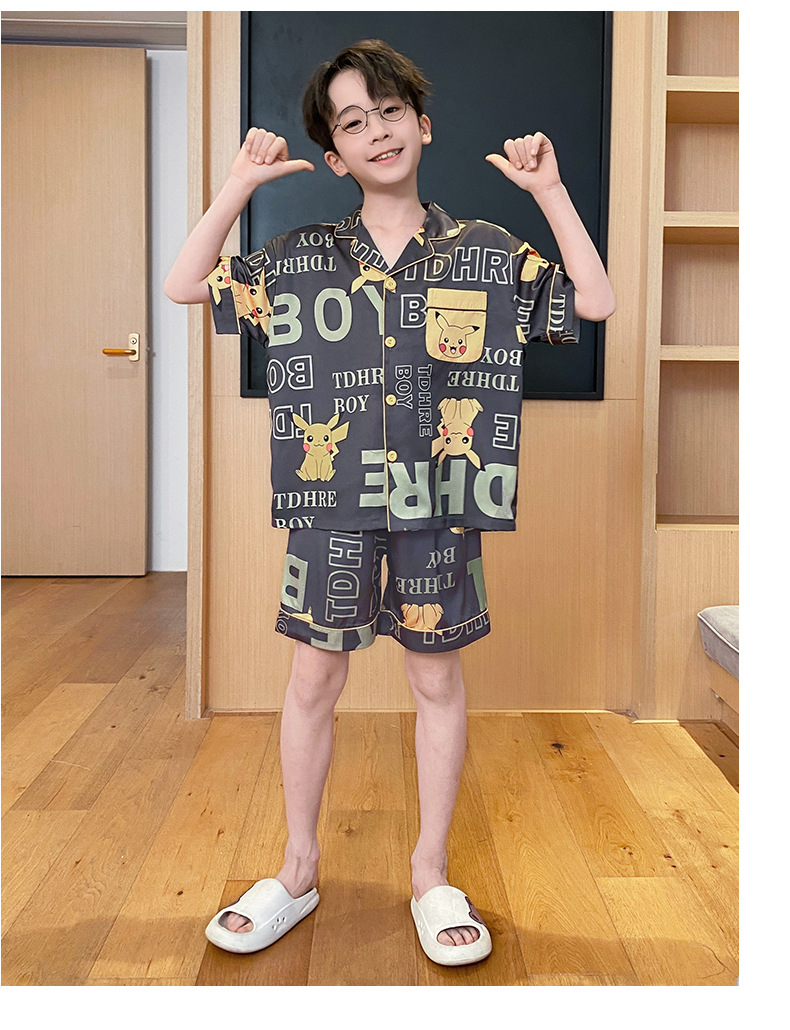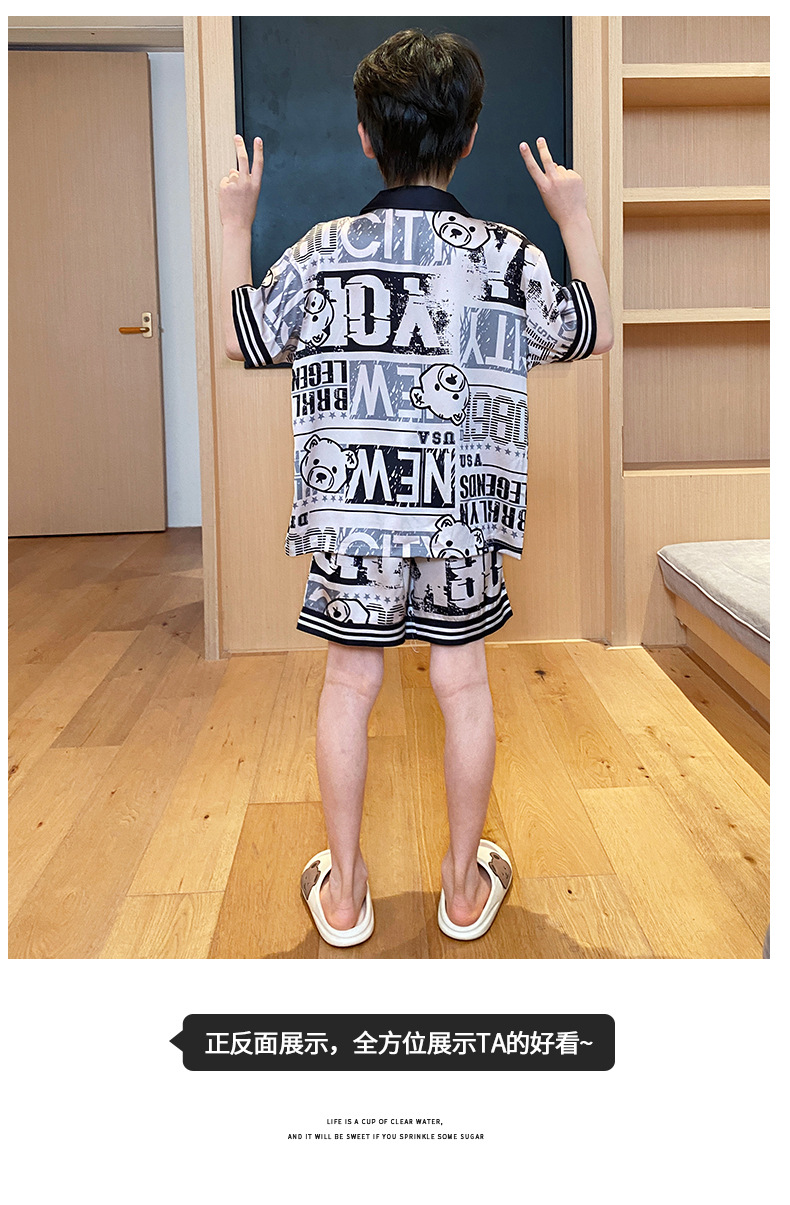 남학생 잠옷 여름 아이스 실크 얇은 짧은 소매 어린이 소년 2025 새로운 여름 십대 큰 아이들의 집 옷스토어 가기
